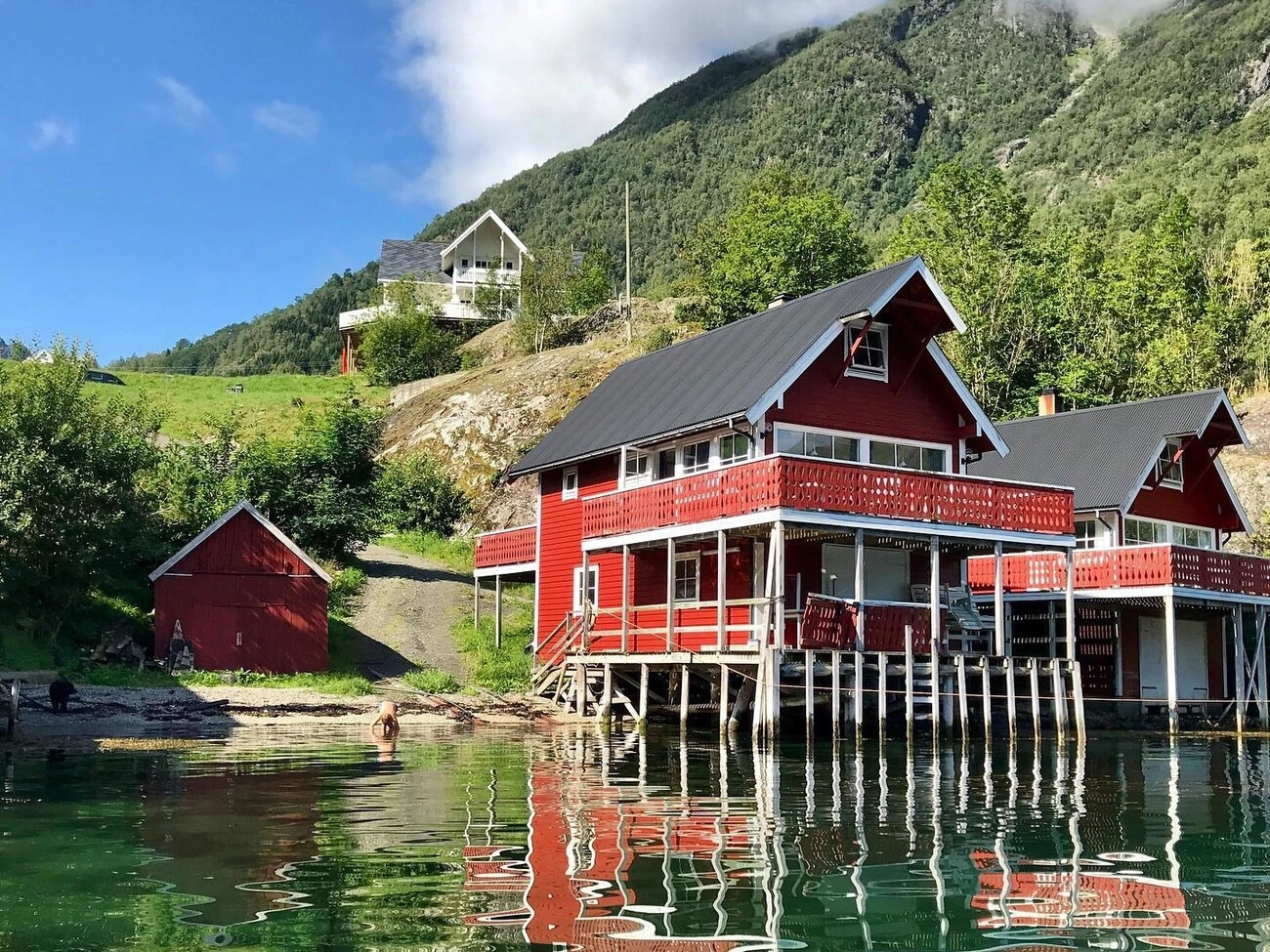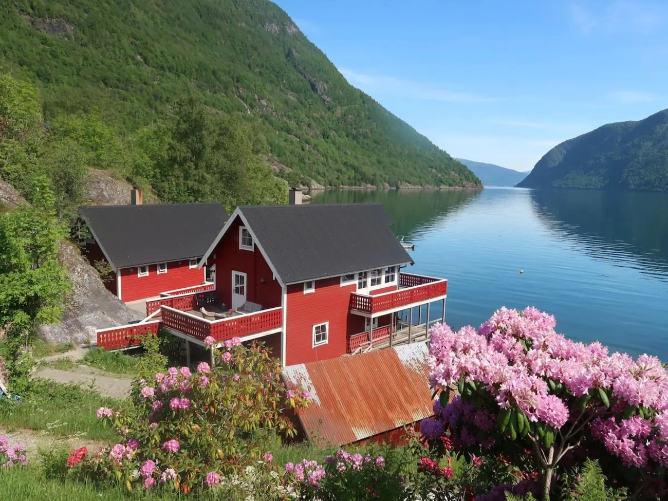 Hyttene våre ligger solrikt og lunt til i idylliske Arnafjord, en sidearm av verdens lengste fjord, Sognefjorden. Med gode bade- og fiskemuligheter, og en liten strand i umiddelbar nærhet, er dette det perfekte stedet for avkobling. Fisking kan gjøres både fra land og båt.