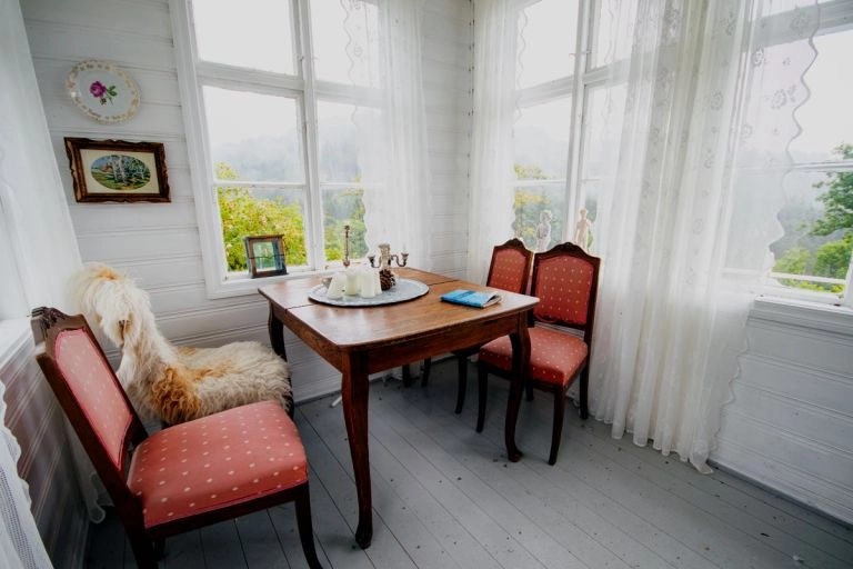 Ta fergen fra Halhjem over til Våge. Herfra er det 10 minutters kjøring til Haaheim Gaard