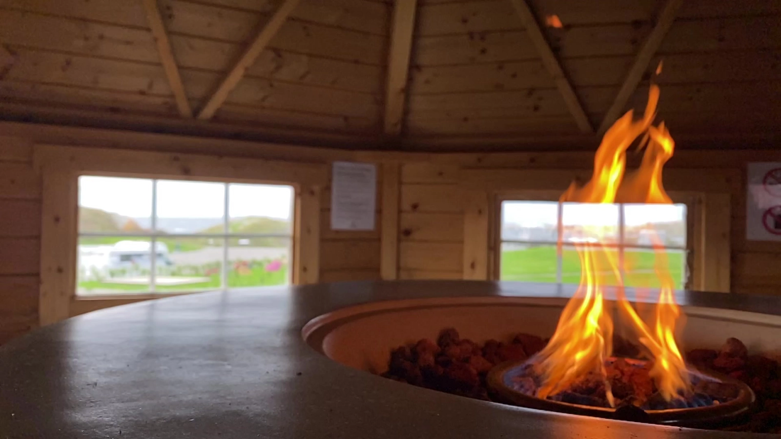 Campingplassen har flere innbydende fellesområder. Glasshytten gir en fantastisk utsikt over sletten og havet, perfekt for å nyte omgivelsene uansett vær. Varmestuen, utstyrt med åpen flamme, skaper en koselig atmosfære på kjølige dager. I tillegg finnes en felles TV-stue og spisestue ved siden av kjøkkenet, ideell for måltider og sosialt samvær.