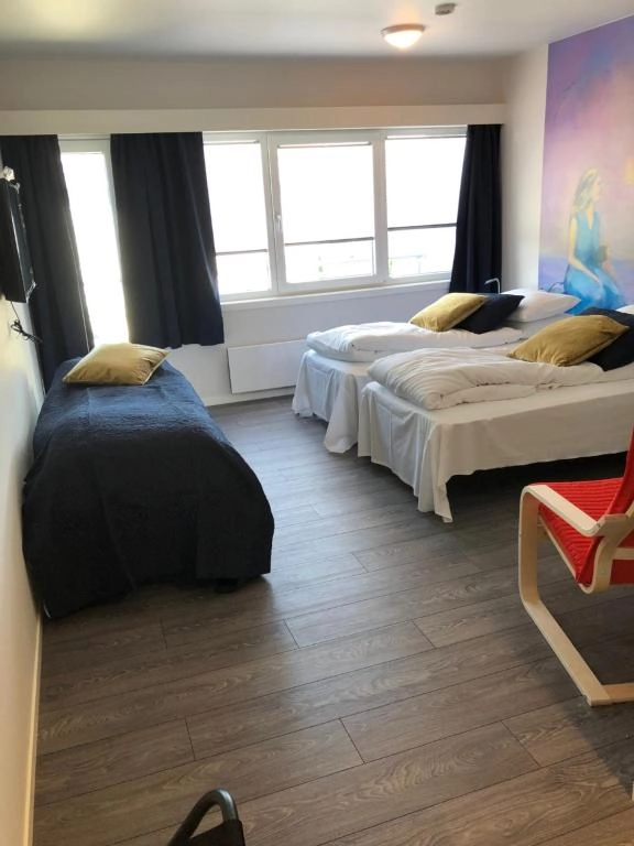 Vi kan tilby følgende romtyper: Enkeltrom, Dobbeltrom og Familierom (på 25 kvadratmeter)