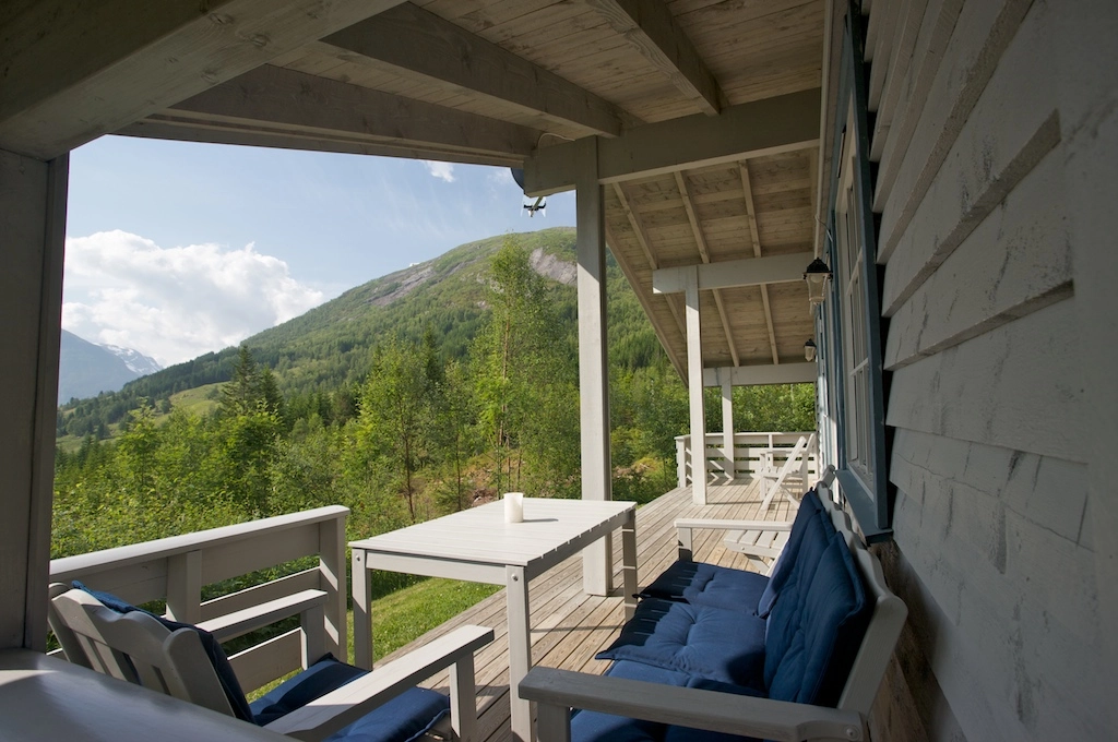 Våre hytter er romslige og moderne, med store, møblerte terrasser der du kan nyte panoramautsikten over fjord, fjell og breer.