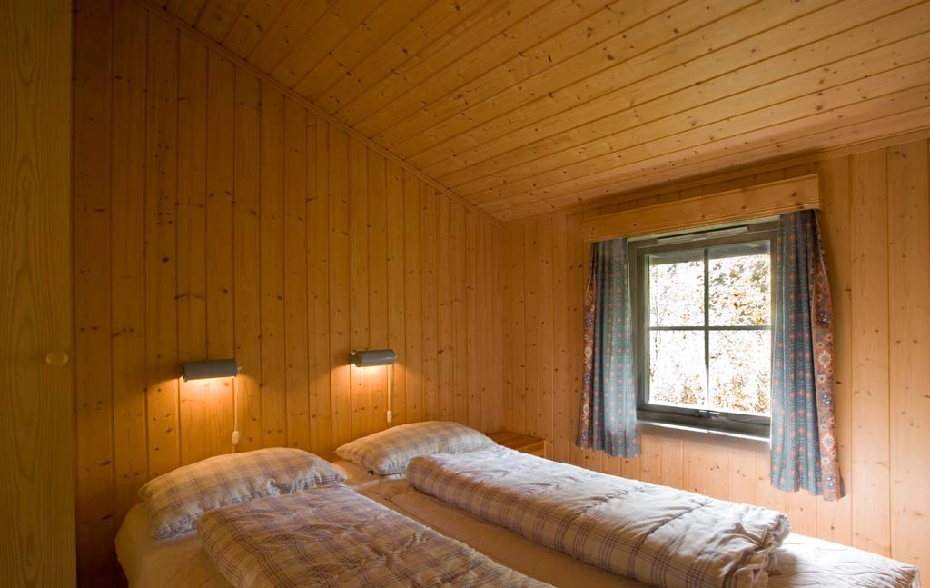 - Hytte 2: Ett soverom med dobbeltseng og ett med fire køyesenger. Har også vaskemaskin.