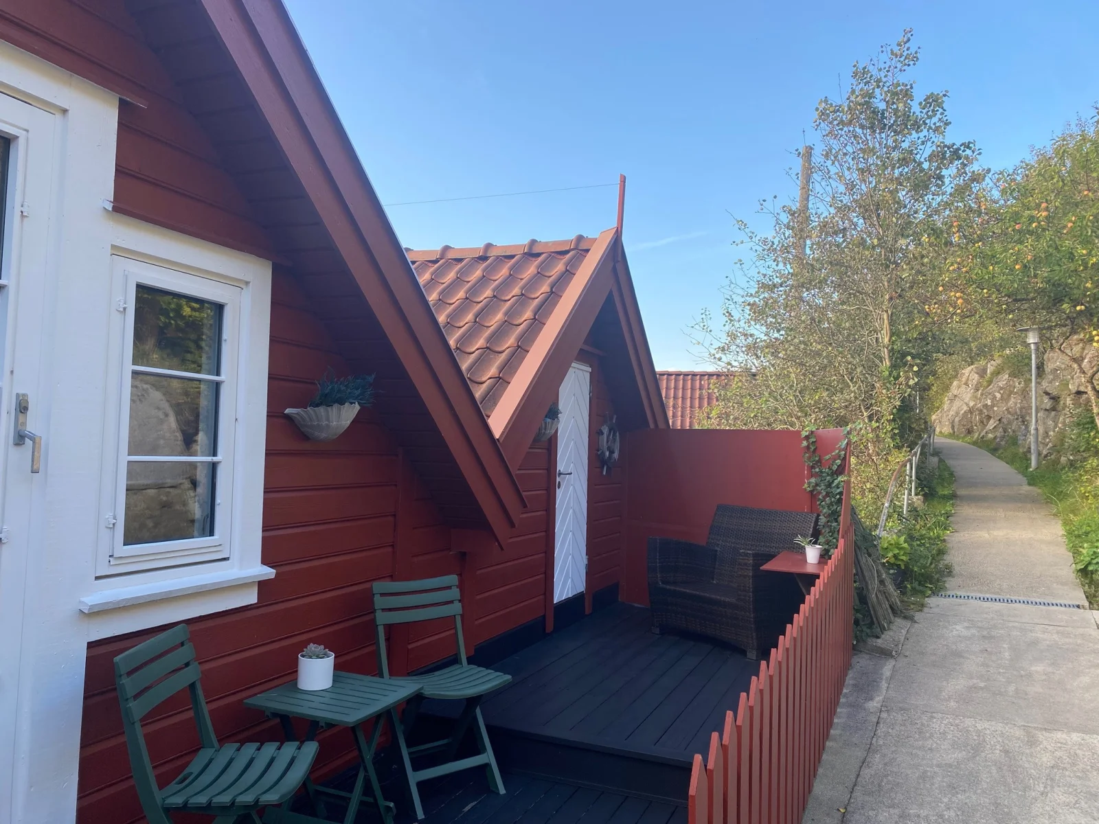 Her tilbys rorbuer og leiligheter i ulike størrelser, fra små, idylliske alternativer for 2 personer til større leiligheter med plass til opptil 8. Alle har balkong eller uteområde med fantastisk sjøutsikt, og en stil som kombinerer tradisjonelt og moderne.