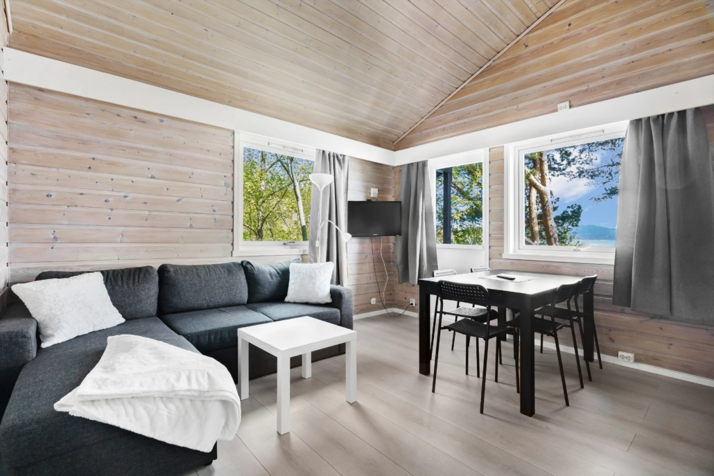 Våre hytter varierer fra kompakte og koselige til romslige og moderne alternativer. Noen har fantastisk sjøutsikt, mens andre ligger mer skjermet blant trærne. Alle hyttene er utstyrt med nødvendige fasiliteter som kjøkken, bad og terrasse, og flere av dem har ekstra bekvemmeligheter som smart-TV og vaskemaskin. For en mer eksklusiv opplevelse kan du leie Villa Raudøya, en stor villa på en privat øy med egen strandlinje og mulighet for fiske og naturopplevelser.
