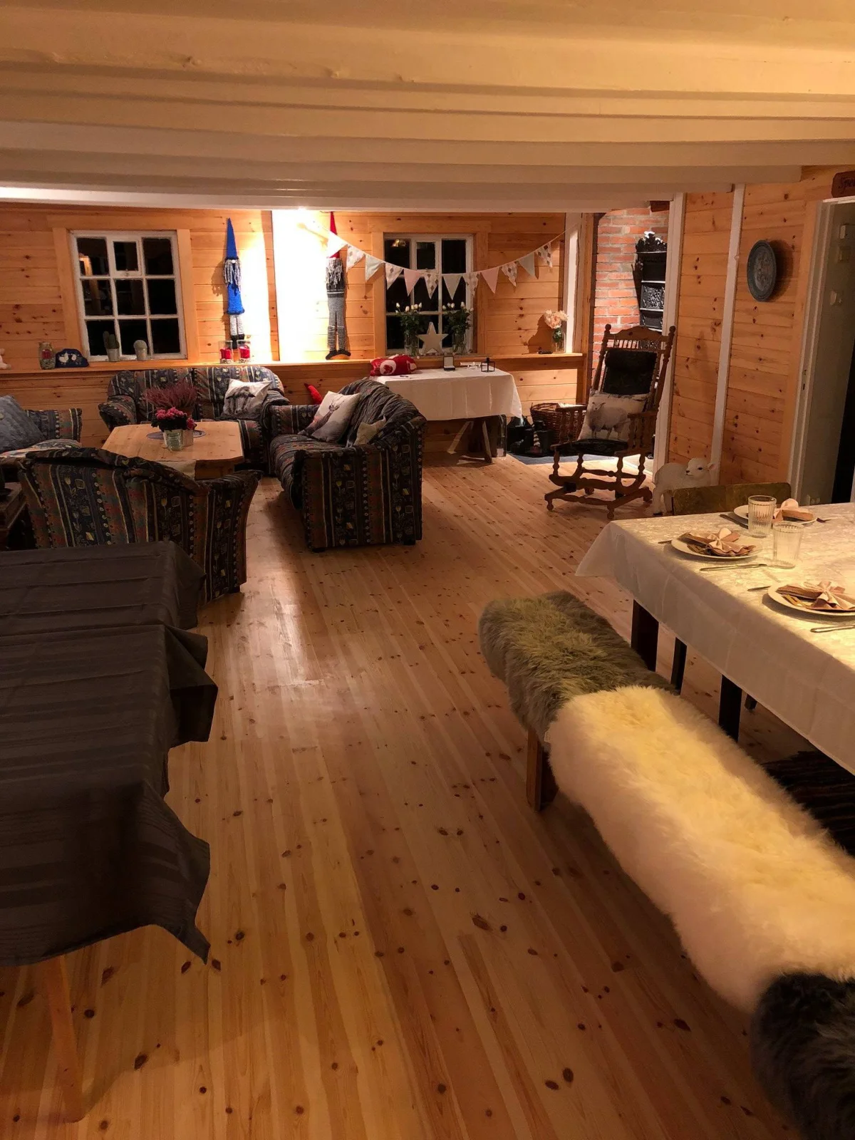 Overnattingen har 6 soverom, 2 bad og plass til opptil 14 gjester, med romslig stue og kjøkken – ideelt for familier og vennegjenger. I sesong er det ofte dyr på beite i nærheten, og ute finner du grillplass/uteområde. Vil du gjøre mer ut av oppholdet kan du også leie låven til selskap, med mulighet for matservering, festlokale og et lite gårdsmuseum på hemsen.