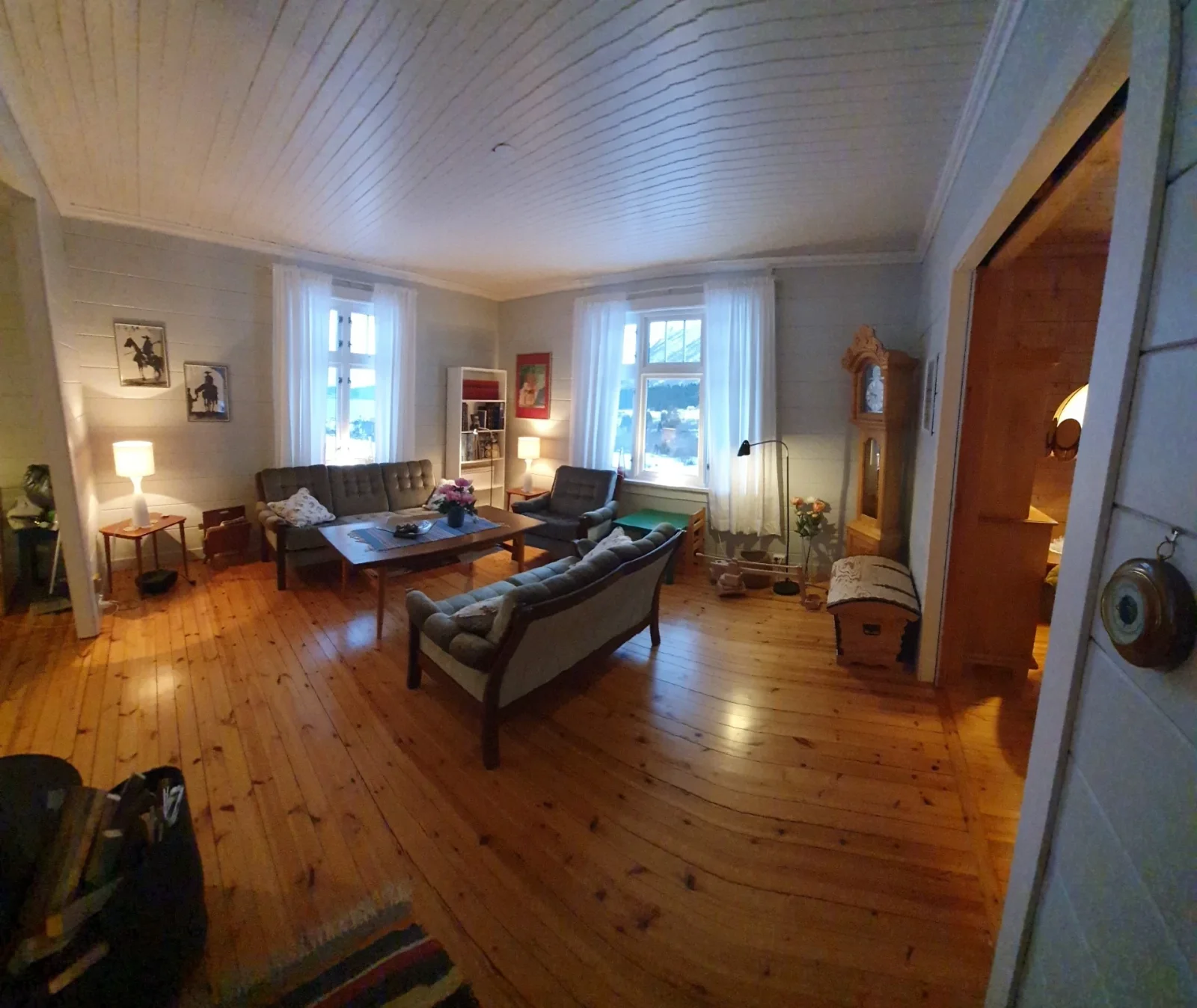 Her bor du på et skjermet, barnevennlig gårdstun uten innsyn, i et hus som er pusset opp de siste årene – perfekt som base for turer i Sunnmørsalpene og klassikere som Molladalen.
