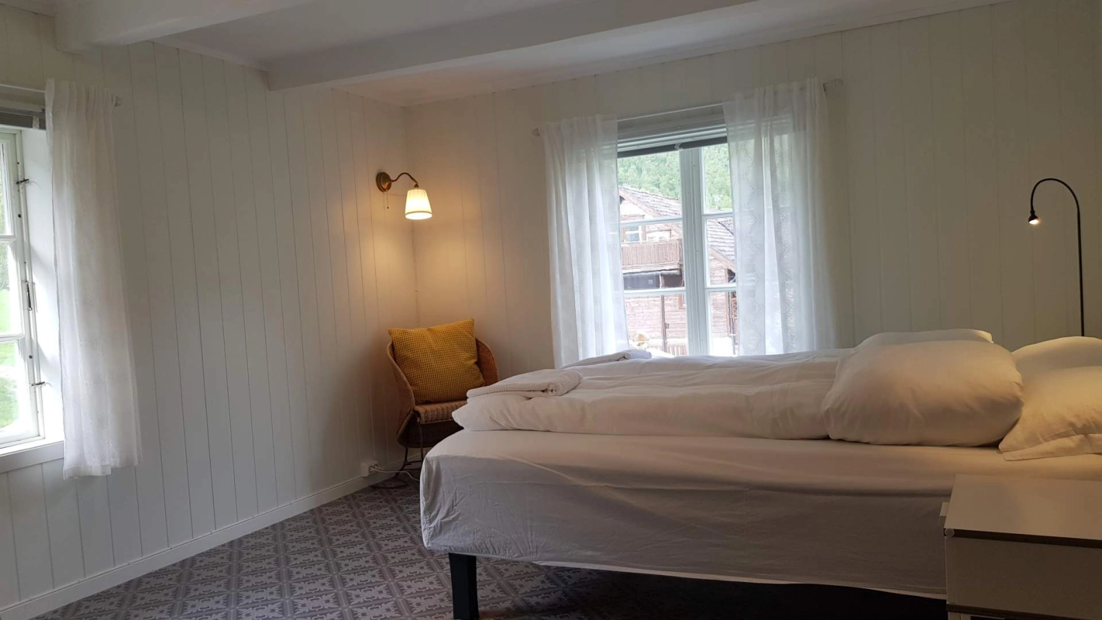 Opplev den gode atmosfæren i våningshuset fra 1915. Huset har vært pusset opp, men har blitt historisk ivaretatt. Det inneholder seks soverom med soveplass til 15. I tillegg har vi to sovesofaer i ei tømmerstue i 2. etasje. Om behovet er stort, har vi 4 køysenger i ei lita hytte på gårdstunet, noe som kan være spennende og populært for de yngre