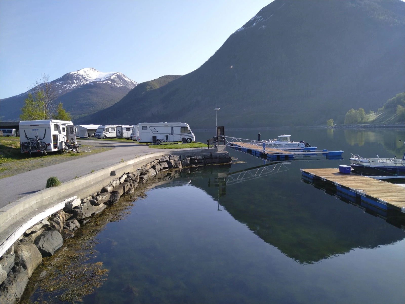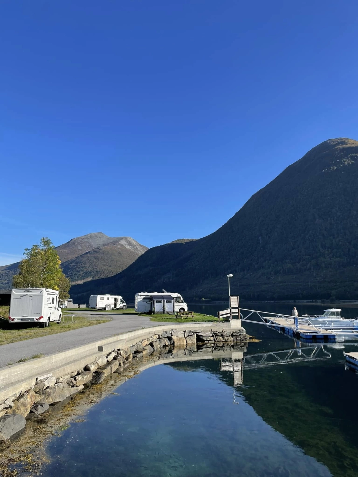 Campingplassen har romslige bobil- og campingvognplasser med flott utsikt og tilgang til strøm. For de som ønsker å komme tett på naturen, finnes idylliske teltplasser like ved sjøen.