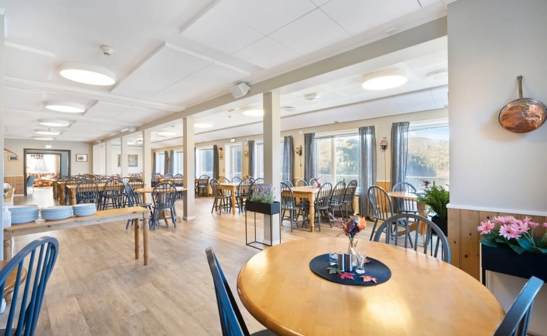 "Matopplevelser for hele familien! I vår restaurant har du panoramautsikt over Stordalsvatnet og naturen rundt. En perfekt plass å nyte et godt måltid eller noe godt i glasset (vi har alle rettigheter). På varme dager kan man sitte ute på den store takterrassen. Book ditt opphold i dag eller kom innom for å nyte god mat