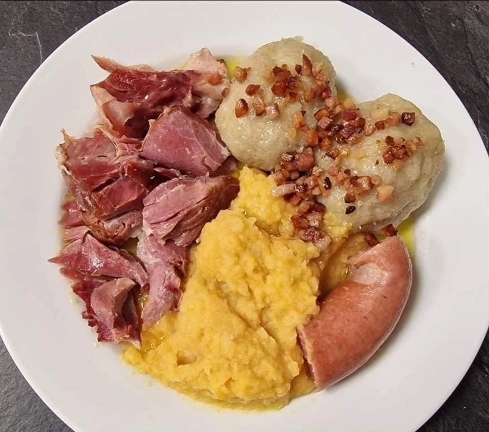 Vi serverer også middag to ganger i uken: Onsdager serveres lapskaus, og torsdager serveres raspeballer.