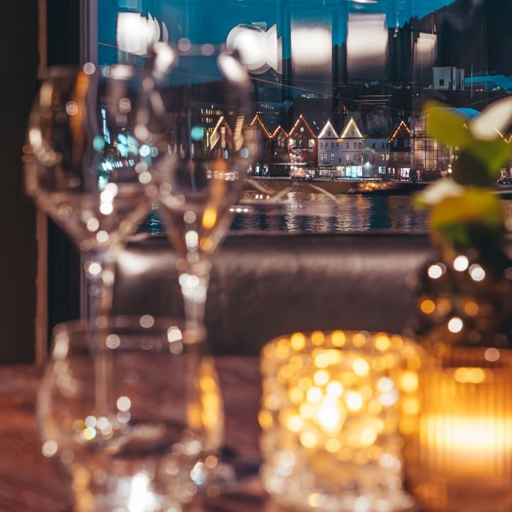 Nyt fersk sjømat, saftige kjøttretter, delikate vegetaralternativer og uimotståelige desserter, alt med en fantastisk utsikt over Vågen og Bryggen i Bergen.