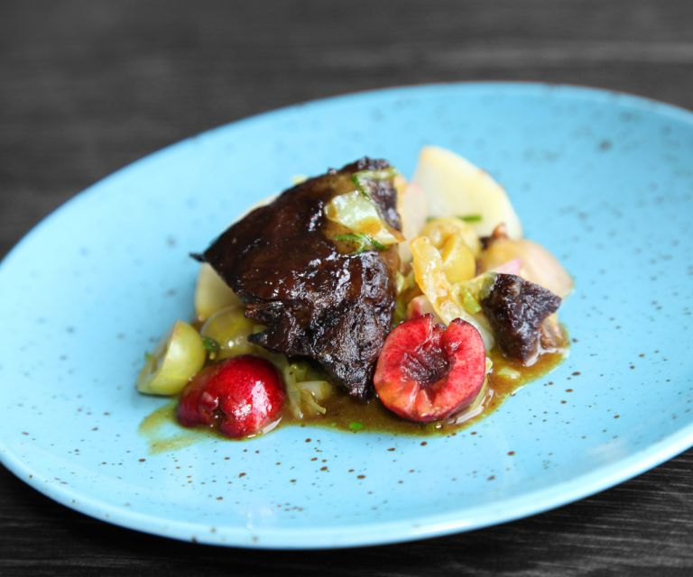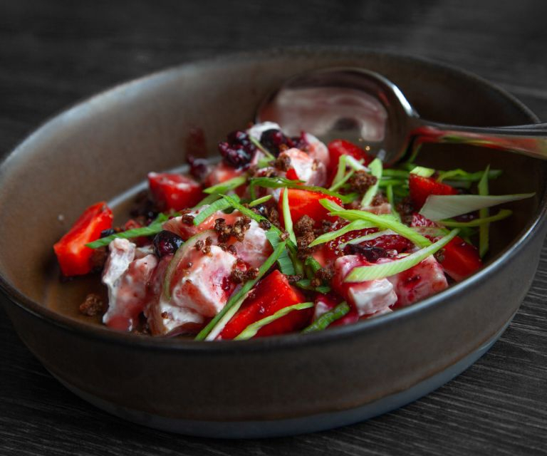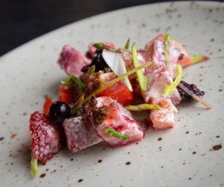 Menyen byttes hver 4. til 6. uke, og byr på både tradisjonelle og kreative retter med en Smaken av Ryfylke-vri.