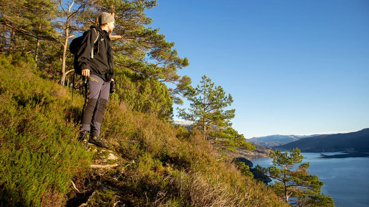 Ute på neset møtes Ådlandsfjorden og Eikelandsfjorden. Det er fin utsikt sørover og til de nærliggende fjellene Møsnuken, Rødsfjellet og Fusafjellet. Rett foran ser du fergen Hattvik-Venjaneset.