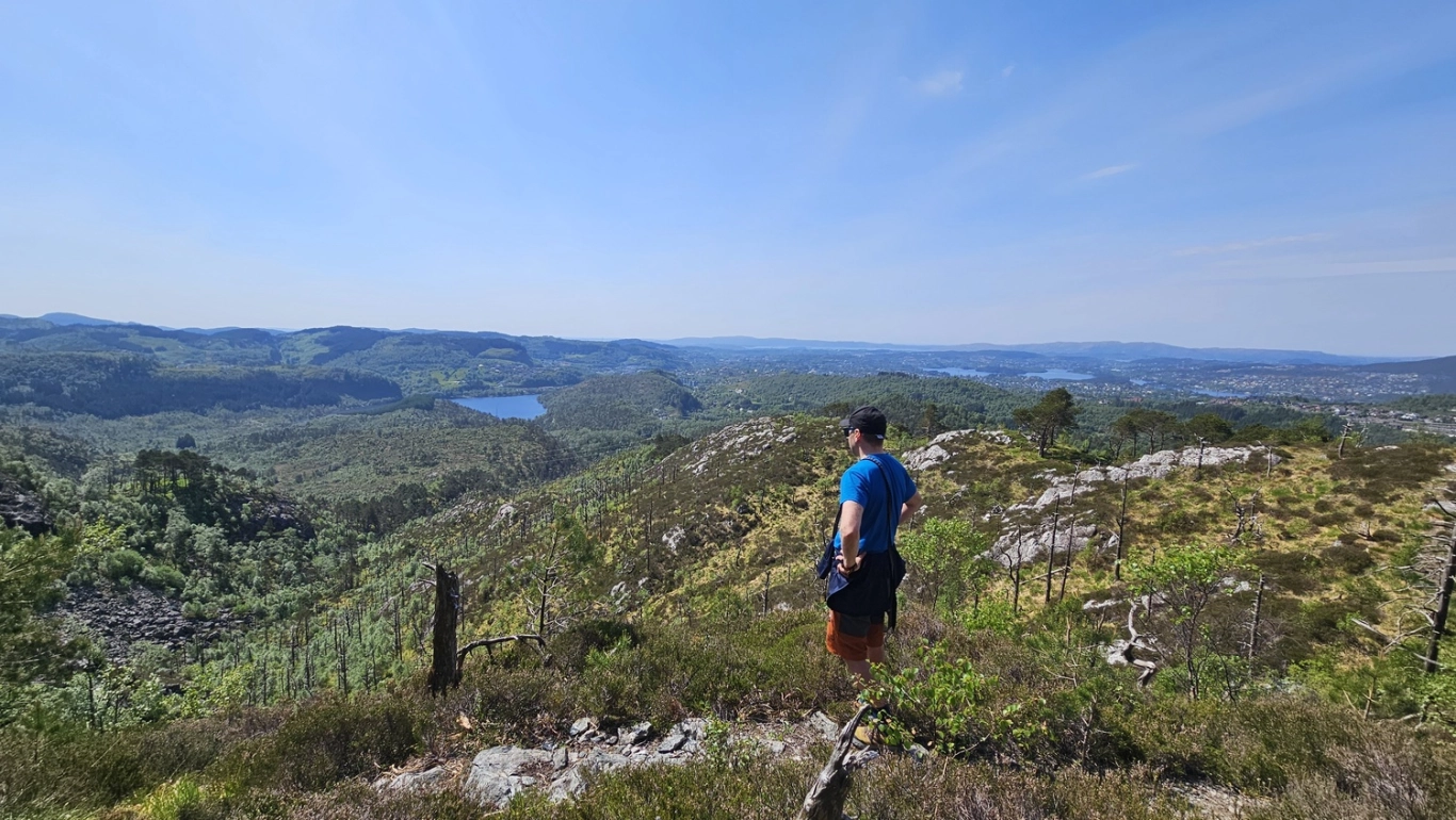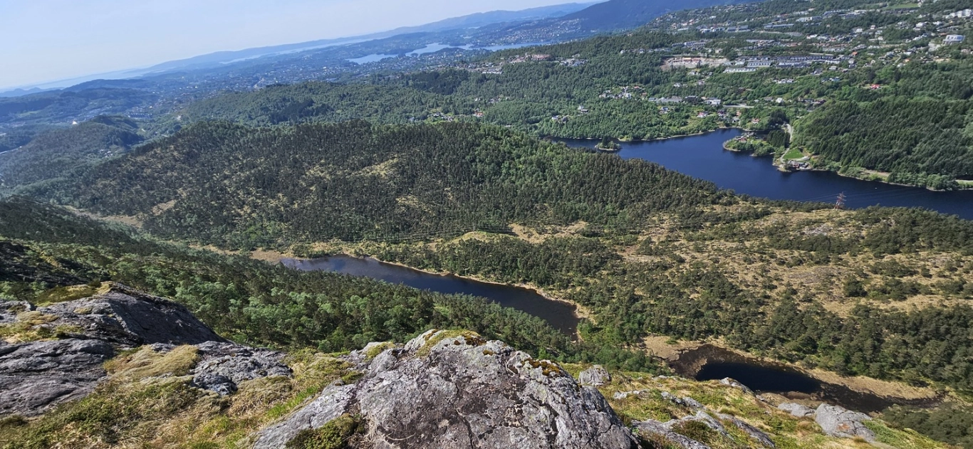 Her får du en flott utsikt over Fana, Livarden, Totlandsfjellet, Ulriken, Løvstakken og sørover mot Os og Møsnuken.