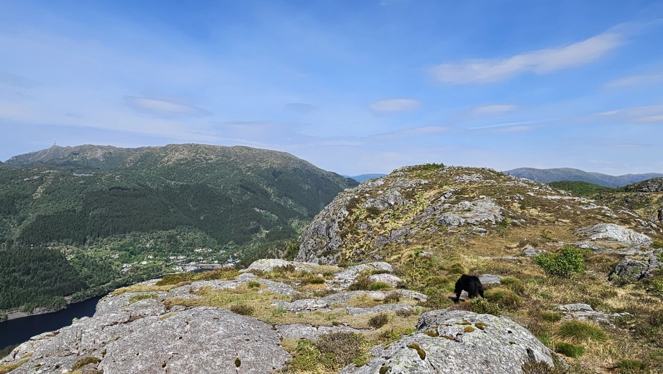 Dette er en gøyal fjelltur til en mindre besøkt fjelltopp i Fana. Det er en fin sti hele veien med jevn stigning og noen lette klyvepartier mot slutten.