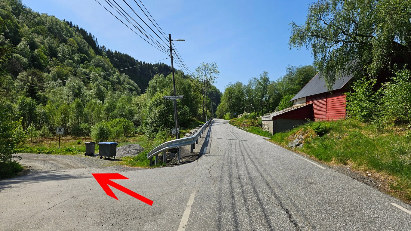 Turen starter på Dyngeland. Gå innover Dyngelandseidet-veien helt til enden og gjennom den gamle bommen. Her blir det til en grusvei. Veien går ned mot Myrdalsvannet, svinger deretter til venstre og fortsetter nordover. Gå til høyre i neste stikryss forbi en gruppe med gamle hagemøbler. Deretter kommer du til et skilt merket "Blåfjellet". Det er usikkert hvilket fjell de mener her, men det antas å være Flåfjellet. Like forbi skiltet starter en sti på høyre side. Følg den over myren og opp lien mot høyspentmastene. Stien er tydelig og lett å følge, og går på kryss og tvers opp lien. Forbi mastene er stien fortsatt god, og du kommer opp til Barkehushaugane. Herfra er vegetasjonen mindre, og stien er merket med små varder.