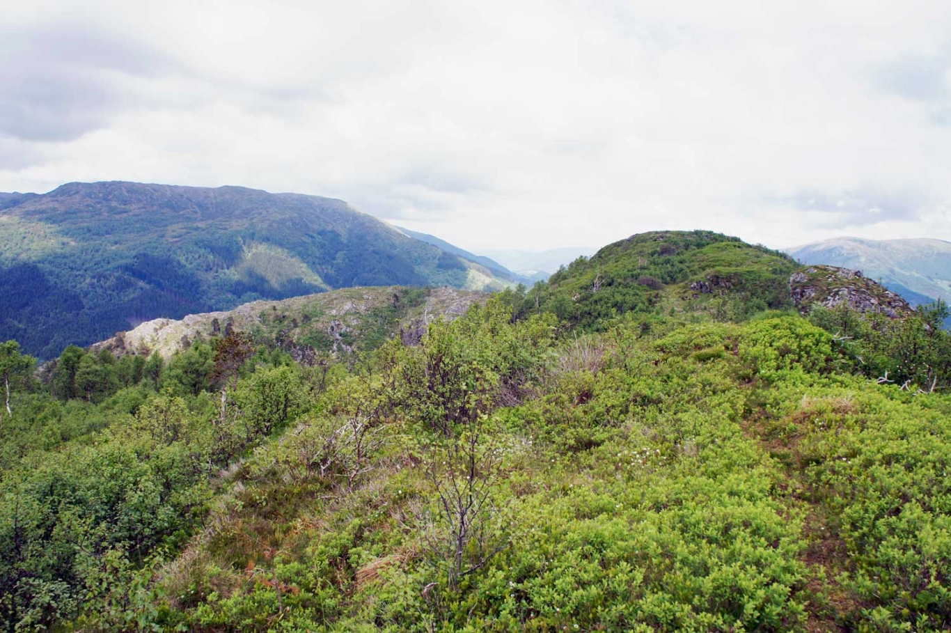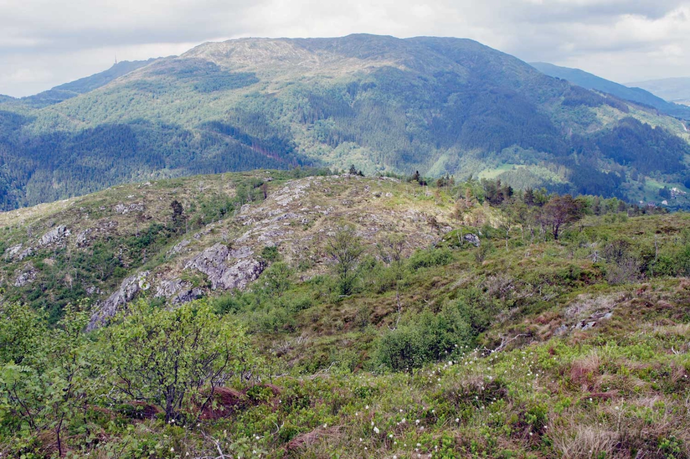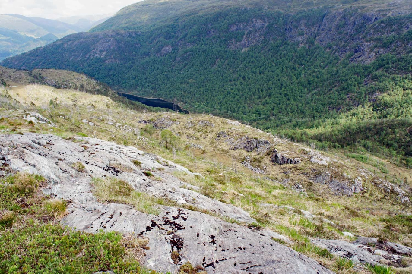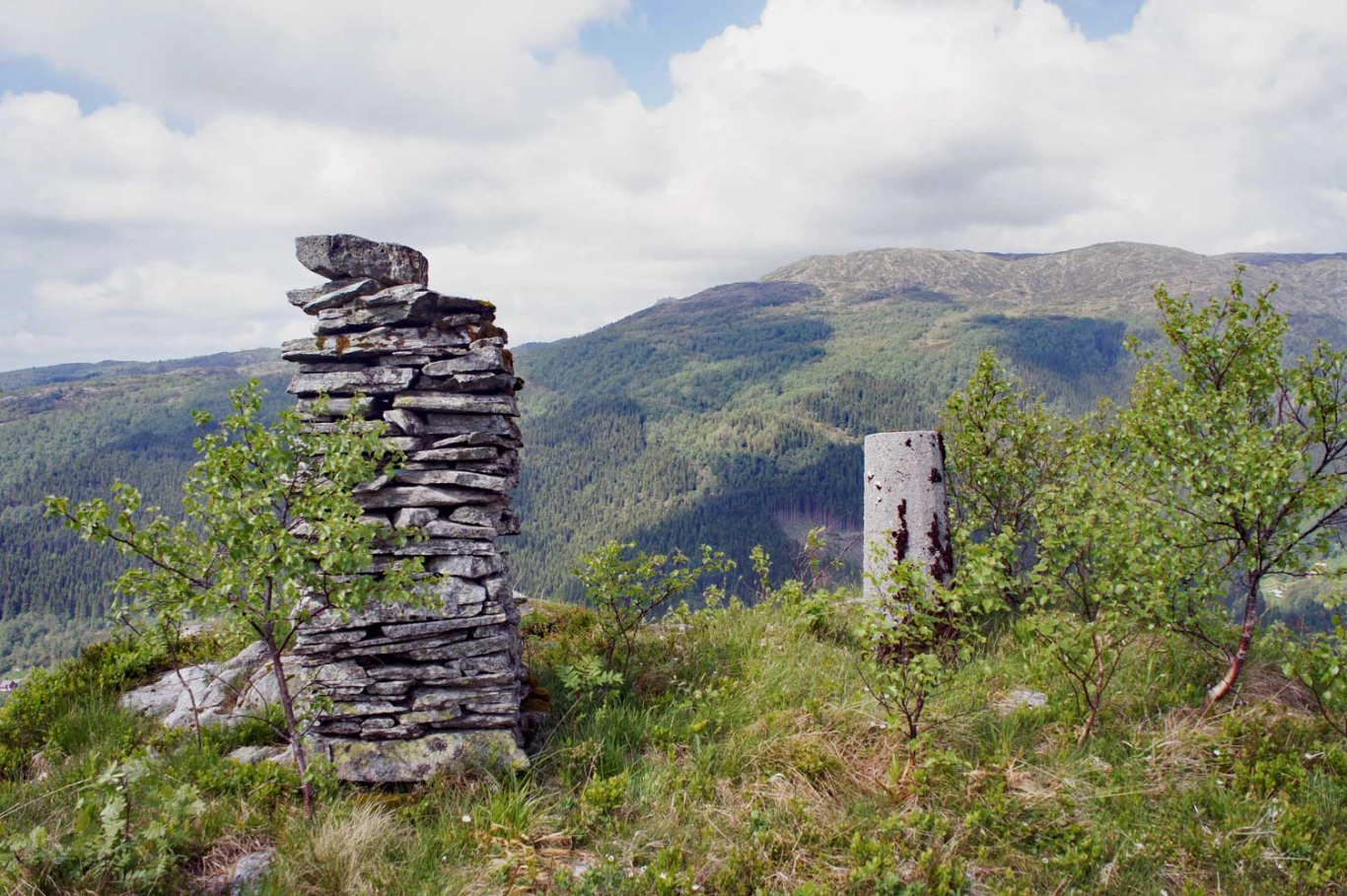 Fra toppen på Skavdalsfjellet følger du ryggen et stykke mot nord og du vil se Brattlandsfjellet nedover mot venstre. Det går en sti, men den er dårlig og derfor vanskelig å følge. Derimot er terrenget åpent så retningen er lett å følge. På toppen av Brattlandsfjellet er det en liten varde, men ingen bok. På kanten går det stupbratt ned i Grimevannet. Nyt den flotte utsikten over Bergen og Fana. Du kommer garantert ikke til å treffe andre mennesker på denne turen.