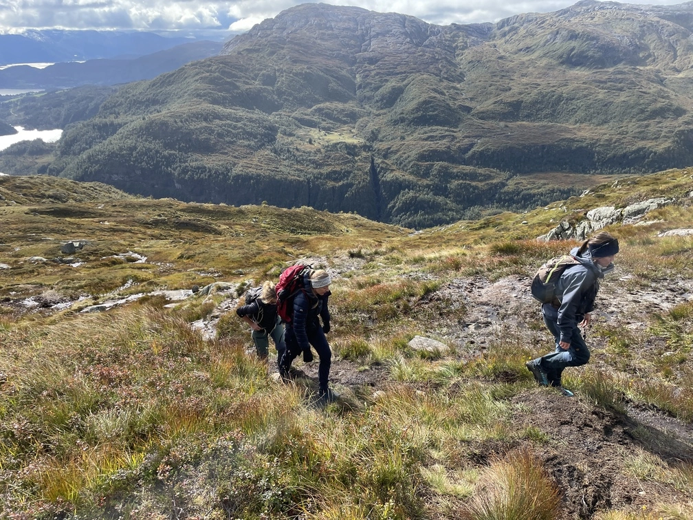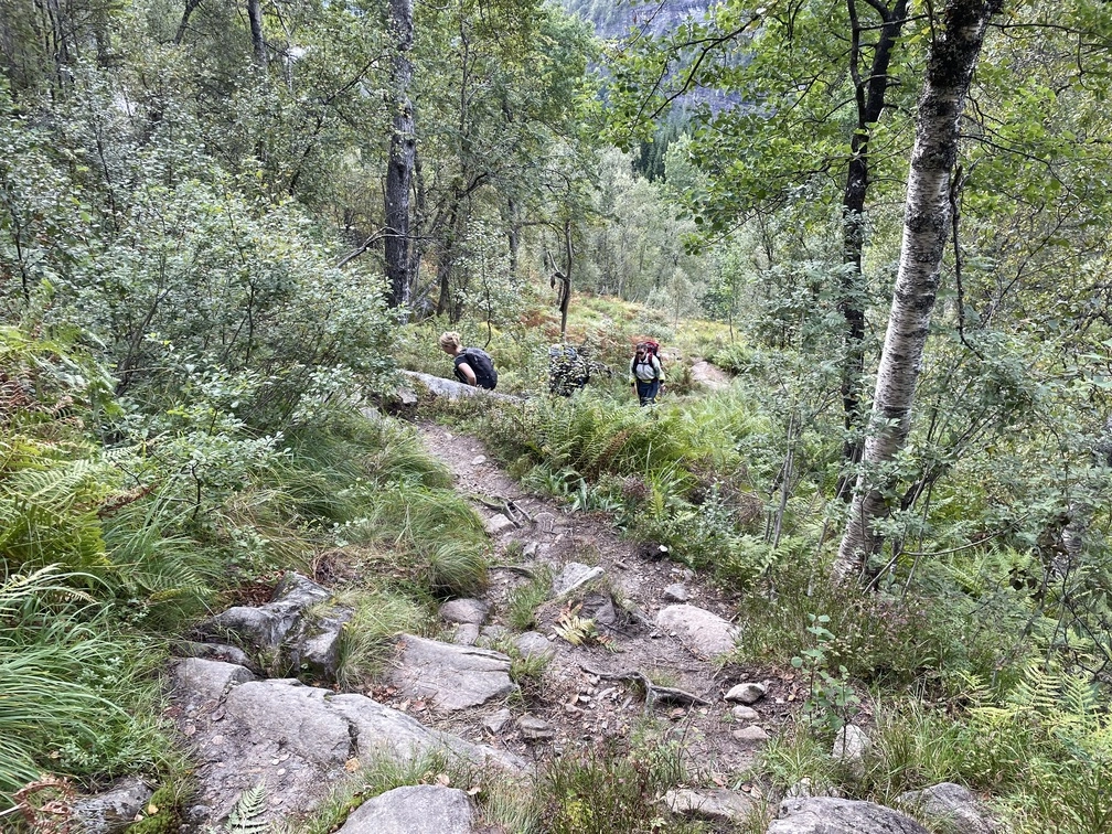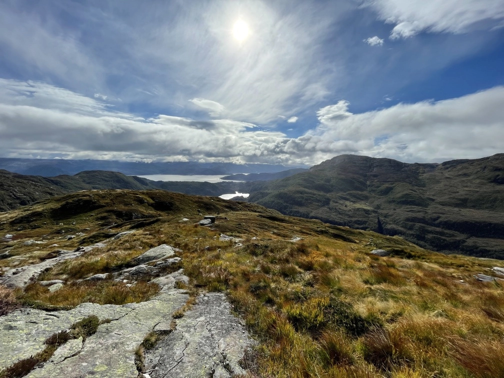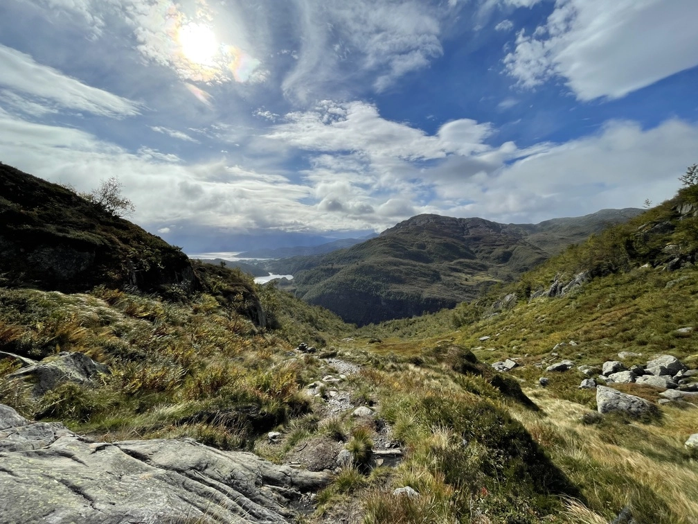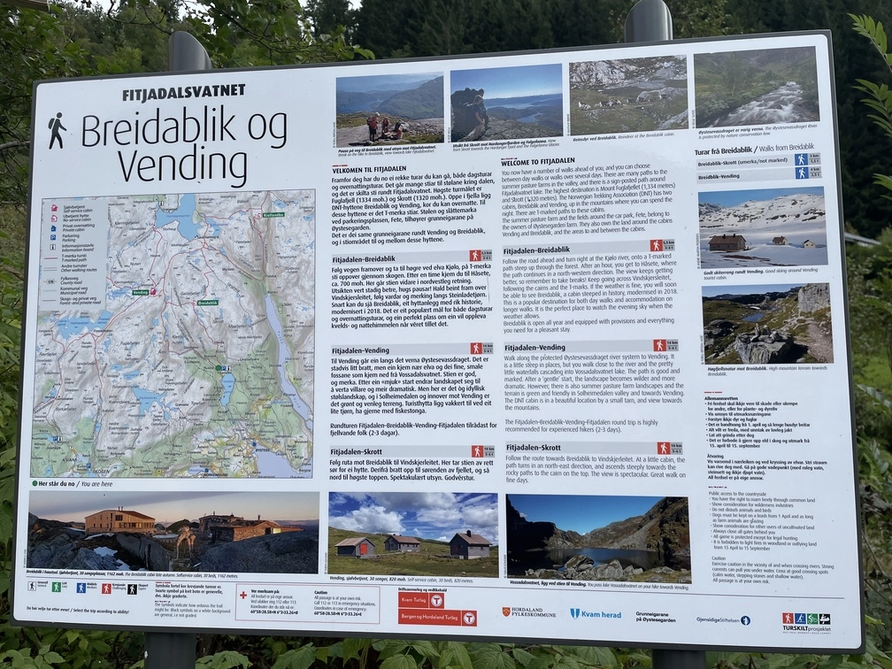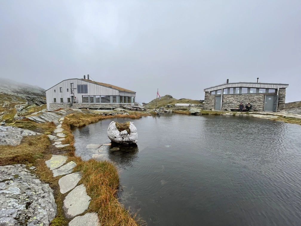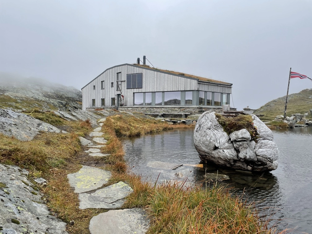 Du kan nå se fjellet Skrott på din høyre side og du kommer til nytt stikryss. Her skal du gå rett frem via Vindskjersleitet. Nå er det bare å følge T-merket sti rett frem på venstre side av vannene til du ankommer hytten.