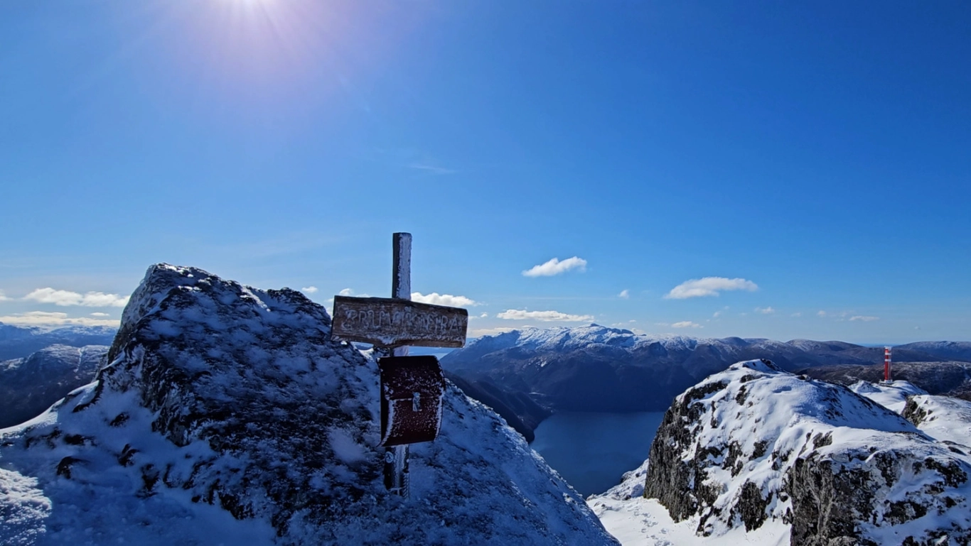 På toppen er det spektakulær utsikt over Sørfjorden og man kan se topper som Hananipa og Gullfjellet fra helt nye vinkler. For en fin rundtur kan man gå ned via Borgasetra (som vist på kartet).