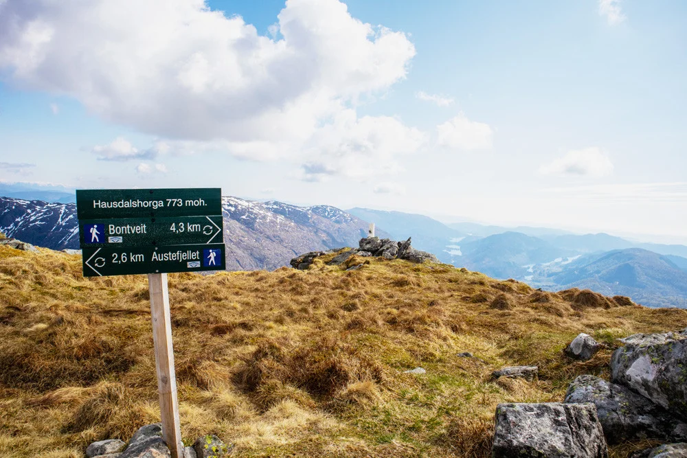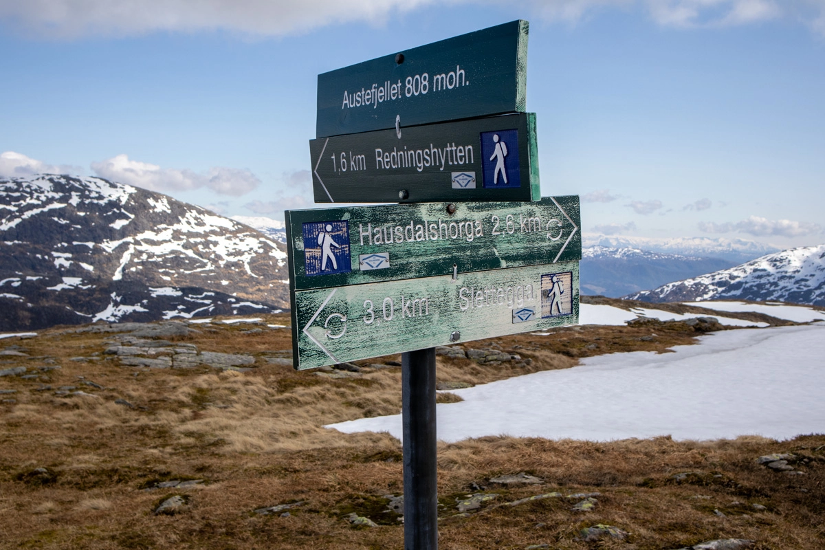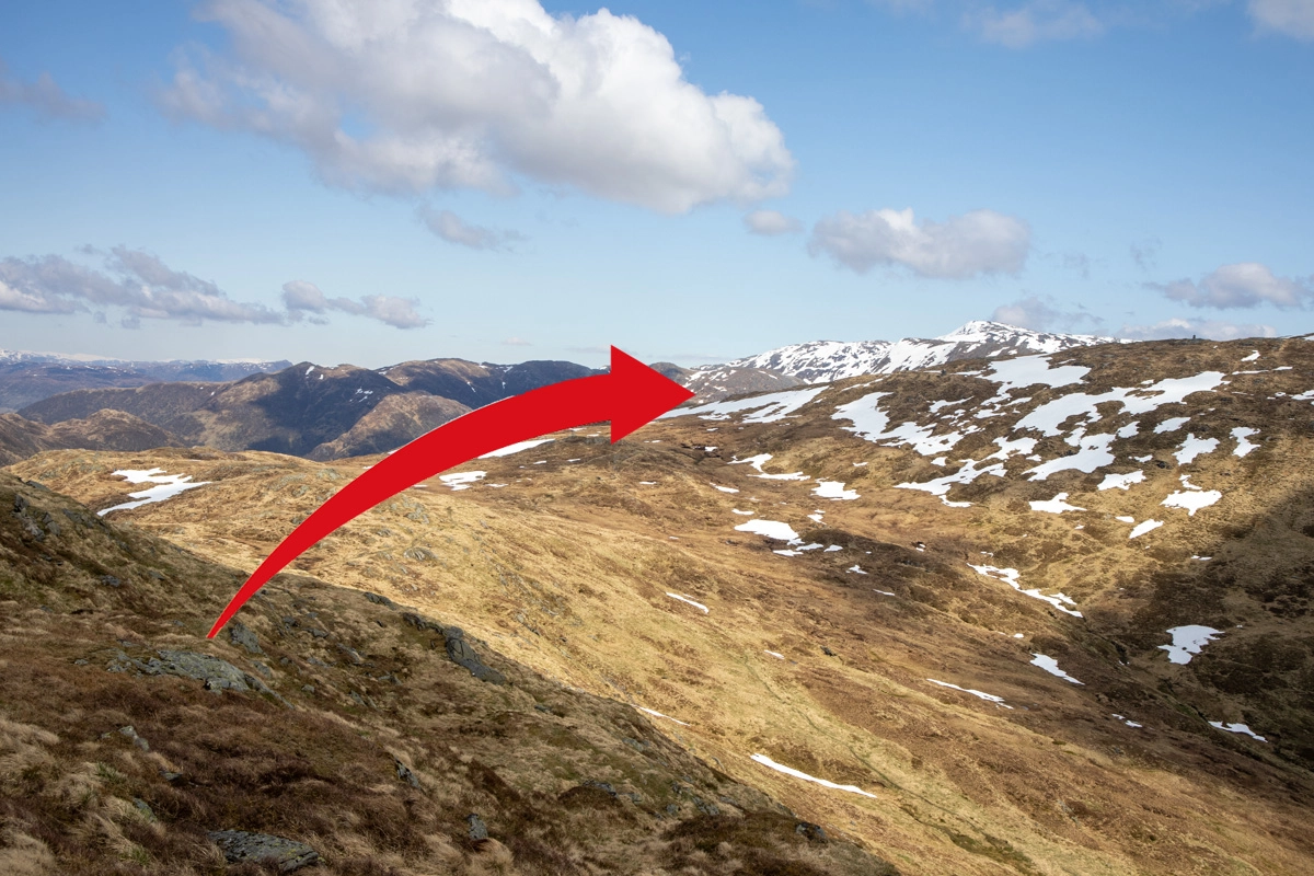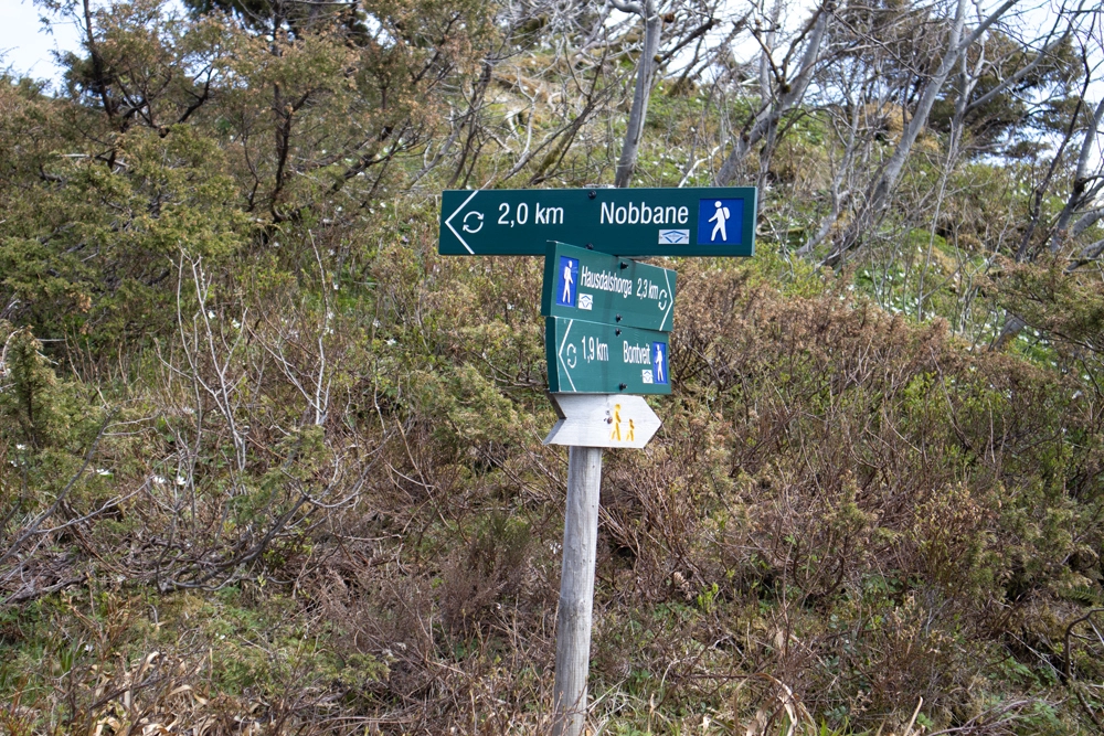 Fra Nobbane bort mot Rundehaugen er stien noe utydelig. Men det er bare å følge ryggen. Om du går Langturen via Sletteggen følg du varderekke mot Austefjellet.