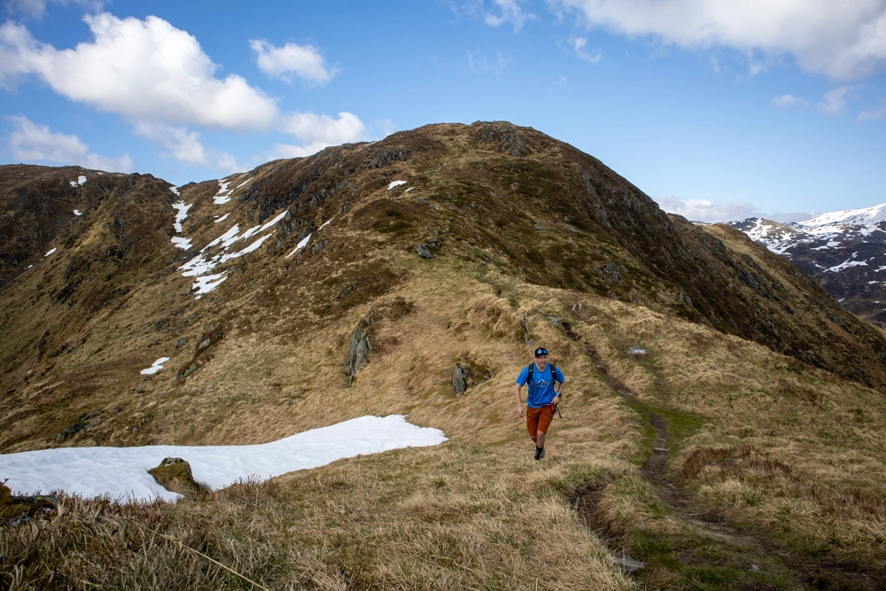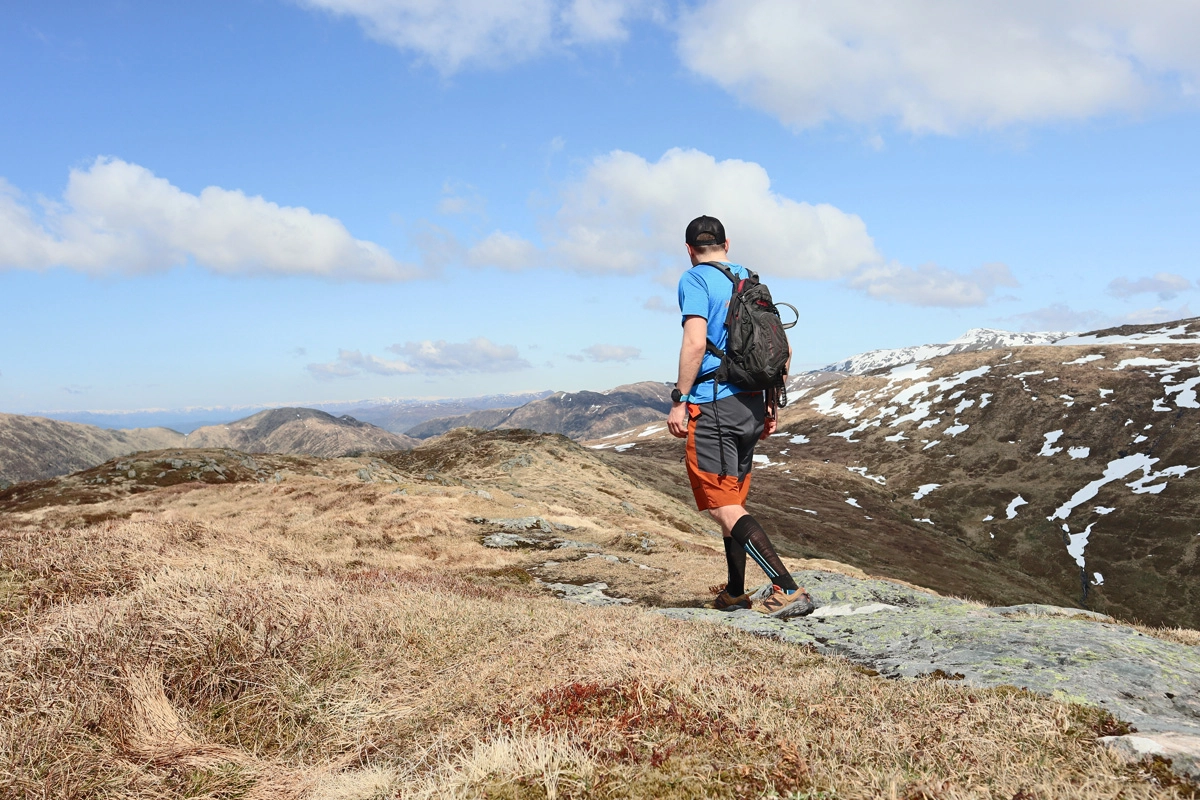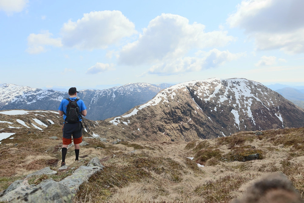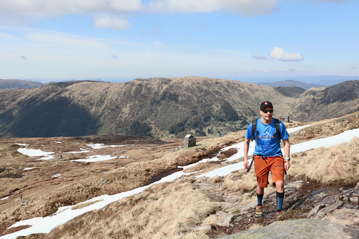 Fra Nobbane bort mot Rundehaugen er stien noe utydelig. Men det er bare å følge ryggen. Om du går Langturen via Sletteggen følg du varderekke mot Austefjellet.