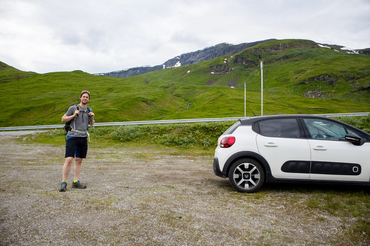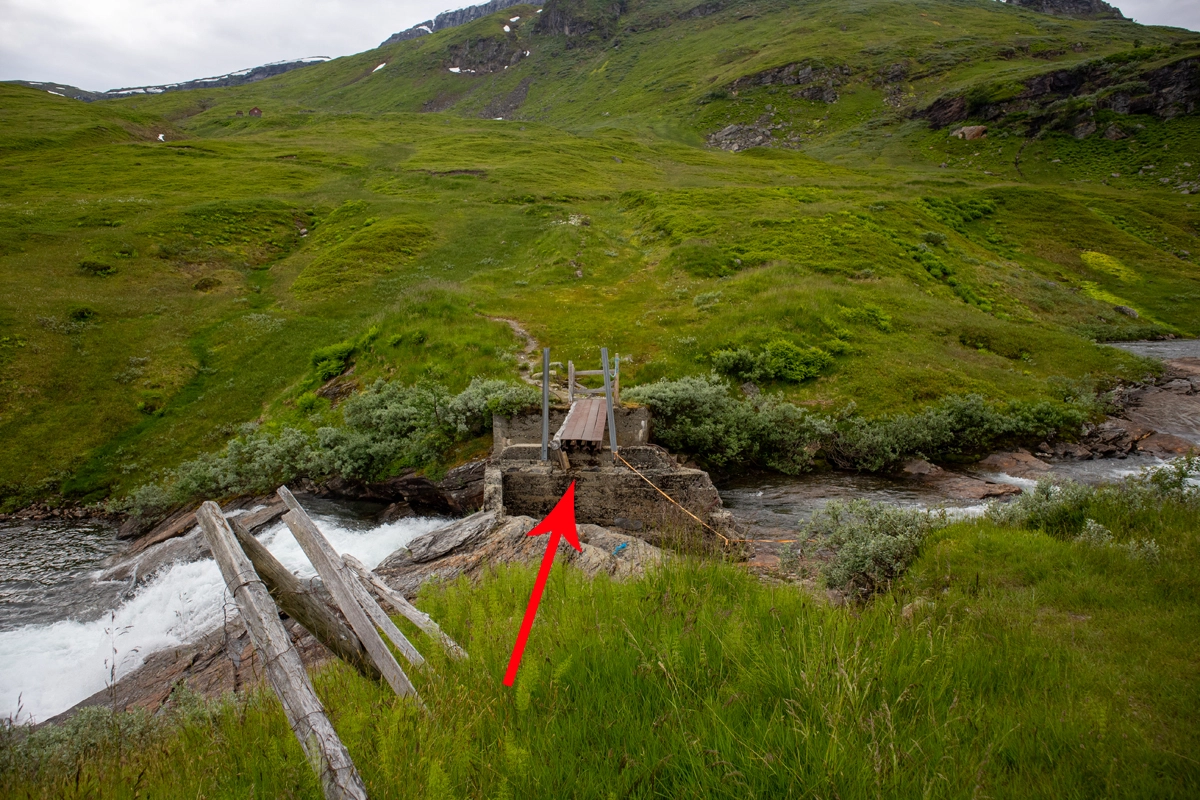 Fra parkeringen følger du veien 100 meter på venstre side. Kryss broen og følg stien som går opp til stølen ved Finnbuene. Fra stølen følger du stien videre innover i dalen. Kryss elven. Om det er mye vann anbefales å krysse lengre oppe. Følg stien videre på venstre side av elven innover Finnbugjuvet.
