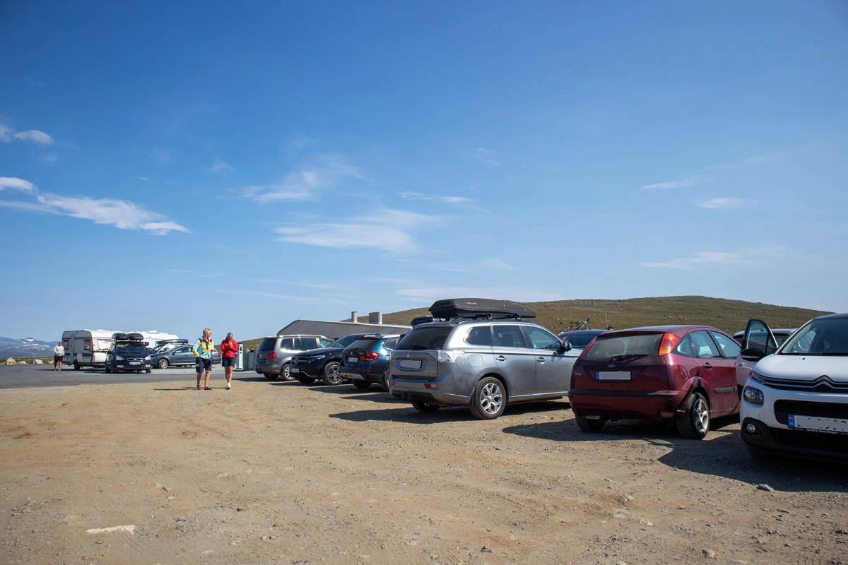 Fra Beitostølen til parkeringen er det ca 20 min å kjøre. Følg fjellveien over Valdresflya til du ser DNT kafeen (Flye1389) på høyre side.