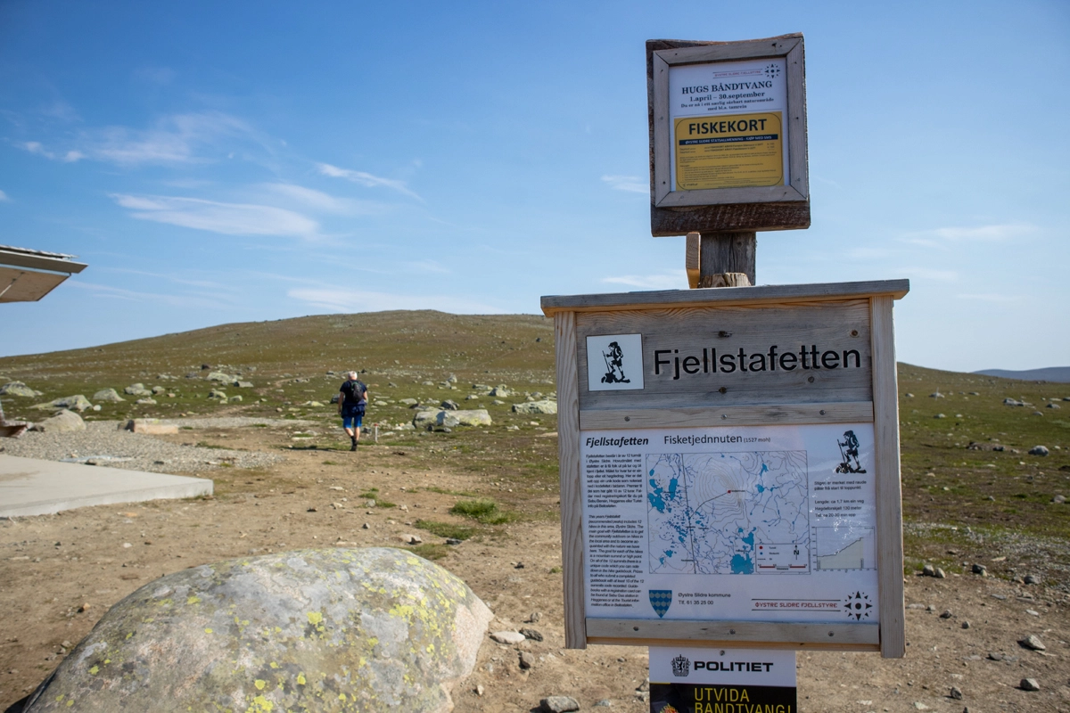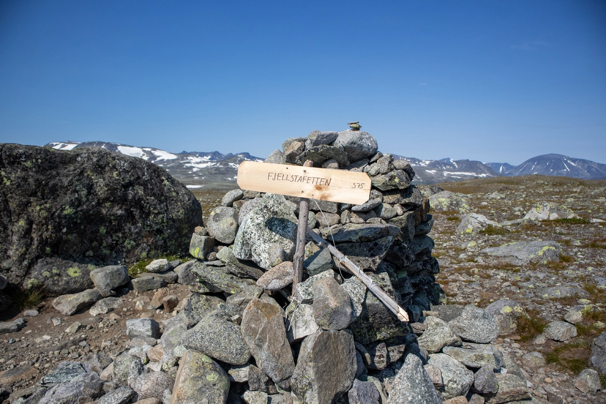 På toppen er en liten varde med et skilt merket "Fjellstafetten". På toppen er det fin utsikt i alle retninger.