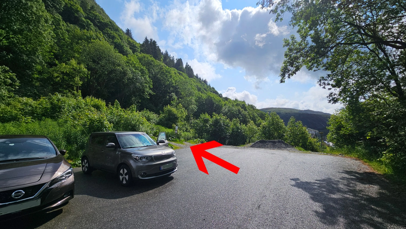 Fra turparkeringen i Stølsveien går du opp til grusveien. Følg denne veien ca. 1 km sørover.