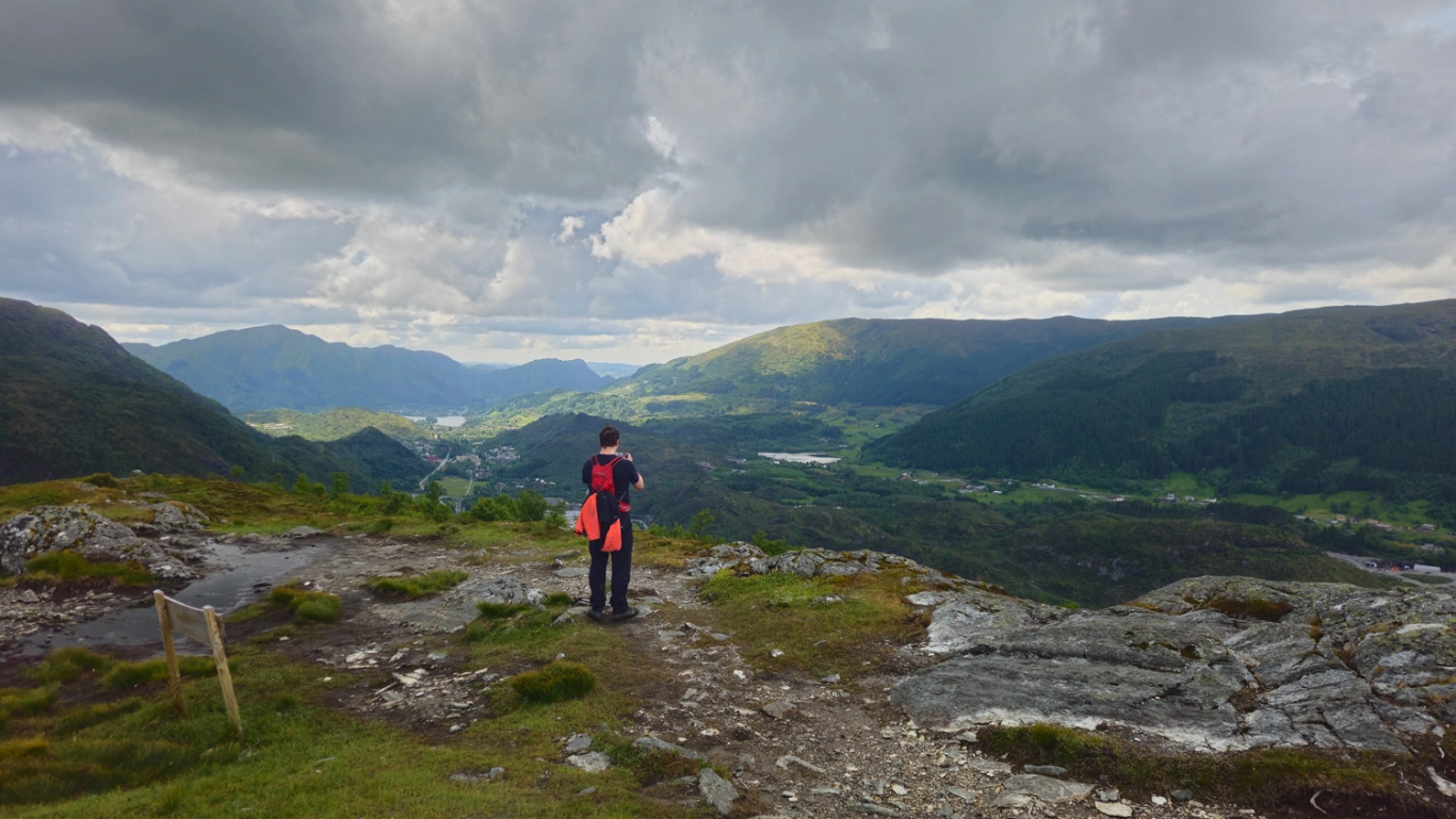 Når du når toppen ved Åsheimsvarden, åpner det seg et storslått panorama over Sørfjorden, Osterøybrua, Garnes og Ytre Arna. Følg deretter stien videre langs fjellryggen – toppen av Arnanipa ligger ca. 150 meter nord for Åsheimsvarden. Herfra har du flott utsikt ned mot Arna.