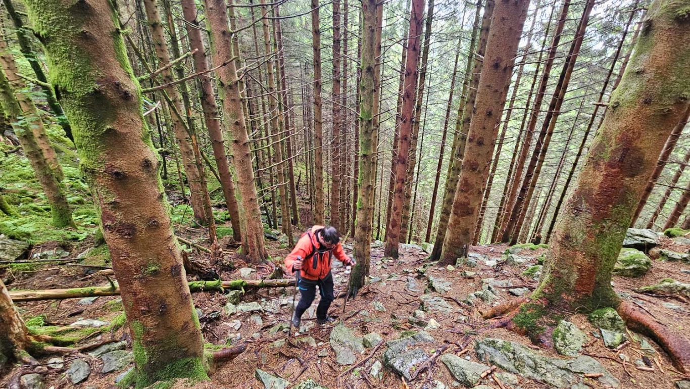 Når du kommer til en bekk og et lite rasteområde, tar du til venstre inn i skogen og opp Hjortestien/Koronastien. Her begynner en brattere klyving langs en tydelig sti. Underveis får du nydelig utsikt mot Arnadalen og Arnavågen. Terrenget endrer seg fra løvskog til åpent fjellplatå.