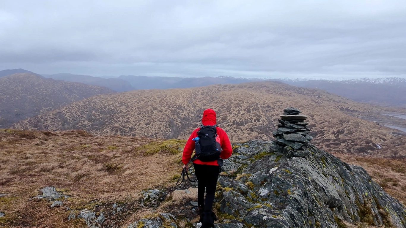 Etter Skåpet går det noe nedover før en ny stigning starter. Her følger du ryggen oppover mot Krånipa. Det siste stykket går gjennom åpent fjellandskap med lyng og brake. Stien er lite tydelig og består mest av hjortetråkk. Hold nordøstlig retning. Når du nærmer deg toppen, flater terrenget ut og varden blir synlig på god avstand.