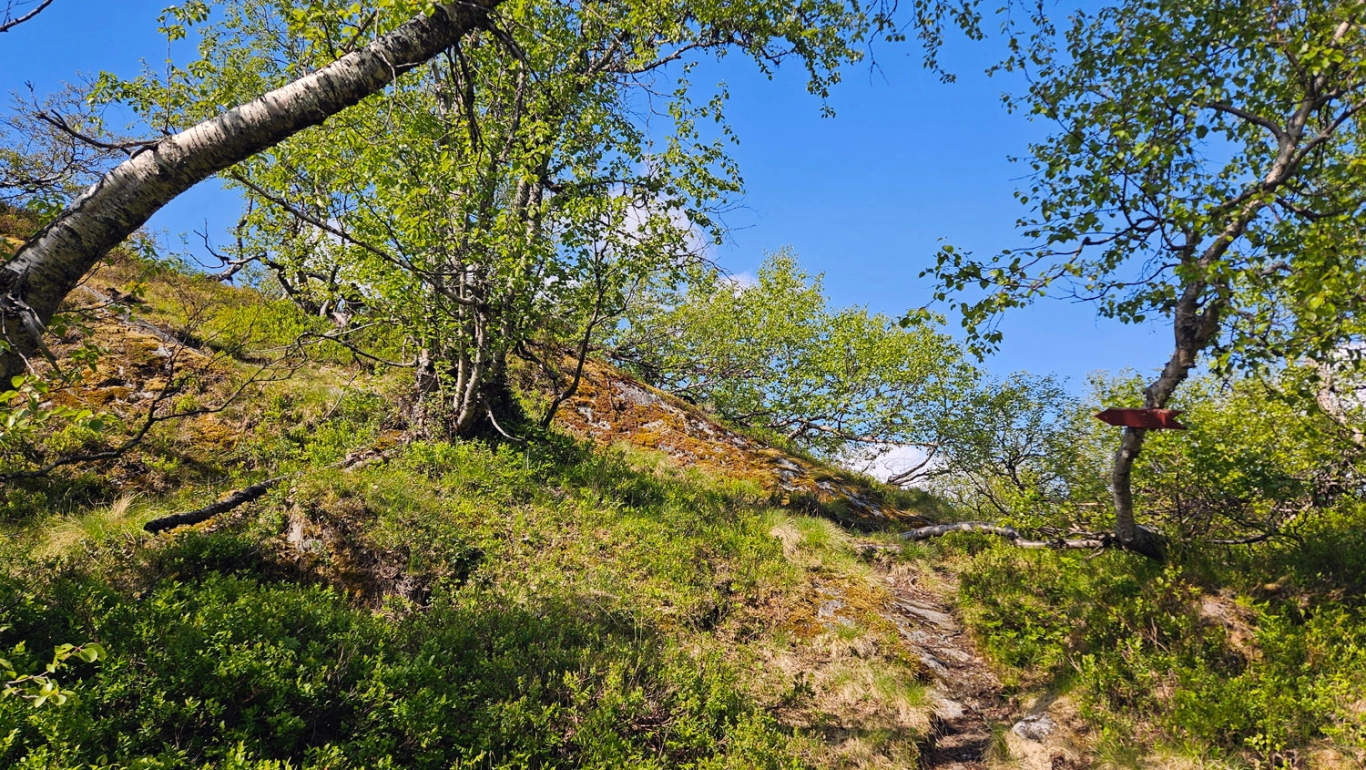 Vi startet turen ved å gå fra Fjærland. Dette innebærer omtrent 2 km langs hovedveien. Dersom du ønsker en kortere tur, kan du kjøre denne strekningen og parkere ved Homrane, hvor det finnes flere parkeringslommer langs veien. Ved Homrane står det et skilt merket "Nesahaugen". Gå gjennom porten – husk å lukke den da området er beite. Følg stien som slynger seg oppover beitet til du kommer inn i skogen. Her blir stien tydeligere, merket med røde striper på trærne og enkelte rødmalt trepiler.