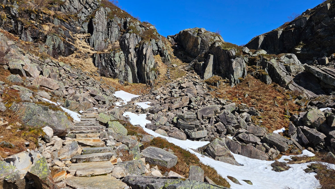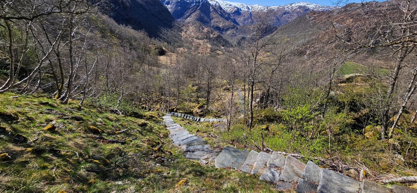 Dette trappeprosjektet, fullført i 2024, består av rundt 1000 trinn og er resultatet av flere års arbeid under krevende forhold. Steinene, noen med en vekt på opp mot ett tonn, er hentet fra nærliggende urer og nøye plassert for å sikre en trygg og varig sti.