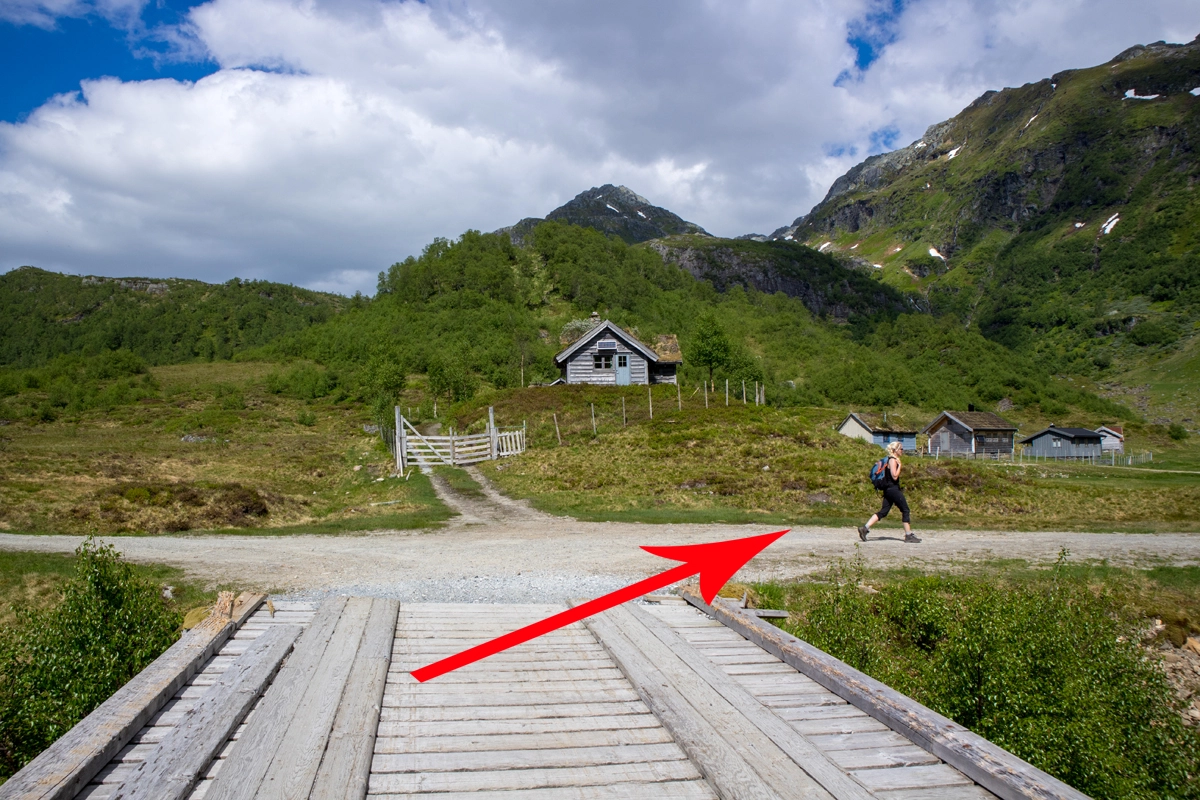 Fra parkeringen går du over broen og følger grusveien opp svingene. Når du kommer opp i Steinskvanndalen følger du veien innover. På høyre side har du fjellet Botnanuten og på venstre side Byrkjefjellet.