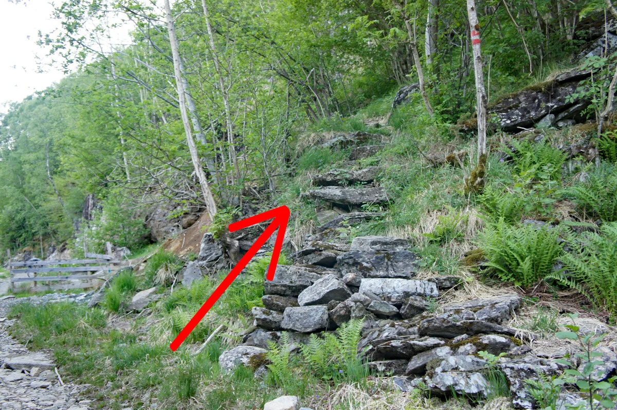 Når du kommer over tregrensen følger du stien videre opp til utsiktspunktet Gyttro. Her går det stupbratt ned i Gjønavatnet. Nå er det fjellterreng og stien er merket med røde malingsflekker. Gå forbi stølen og følg stien videre oppover fjellsiden gjennom Norddalen. Når du har kommet opp i dalen går stien på venstre side bratt mot Kvitingsnibba (Om du ikke har høydeskrekk anbefales det å gå ut på Kvitingsnibba. Her kan man kan se 1000 meter rett ned.)