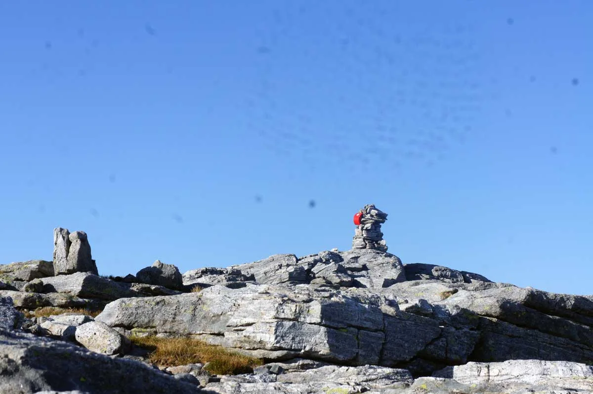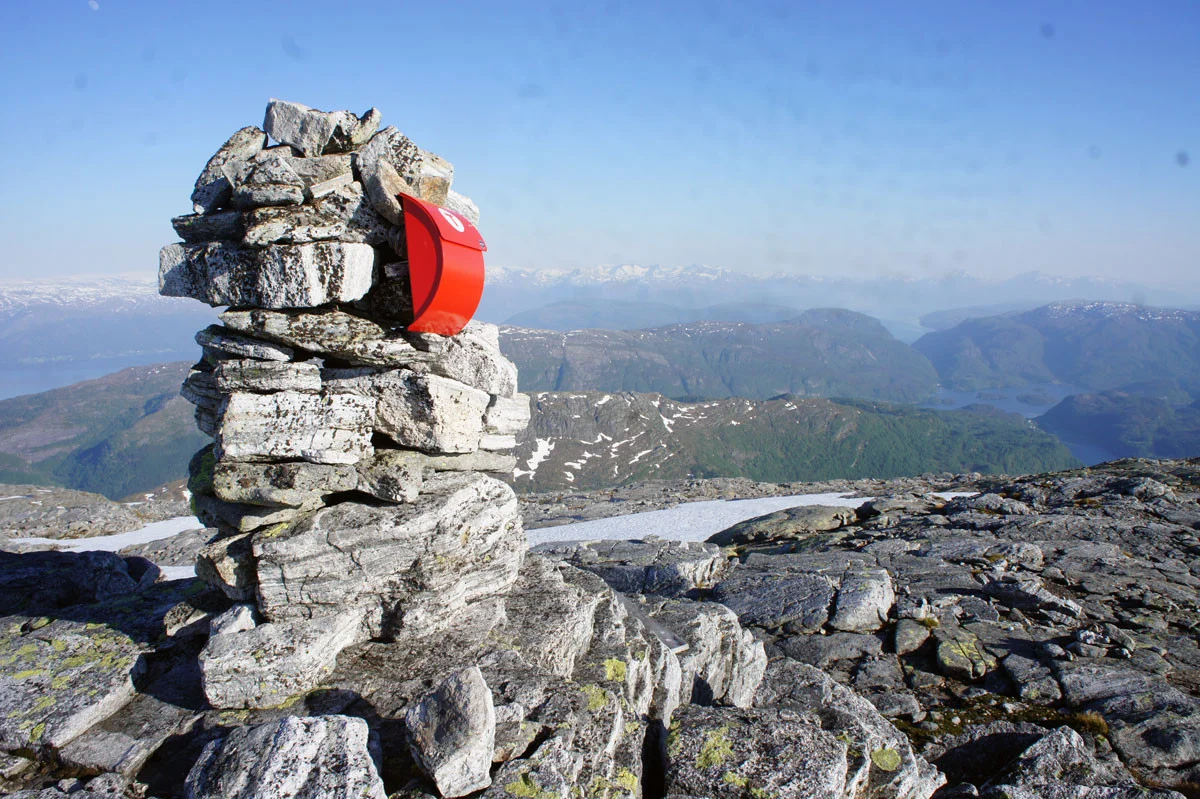 På toppen er det varde, bok og panoramautsikt i alle retninger.
