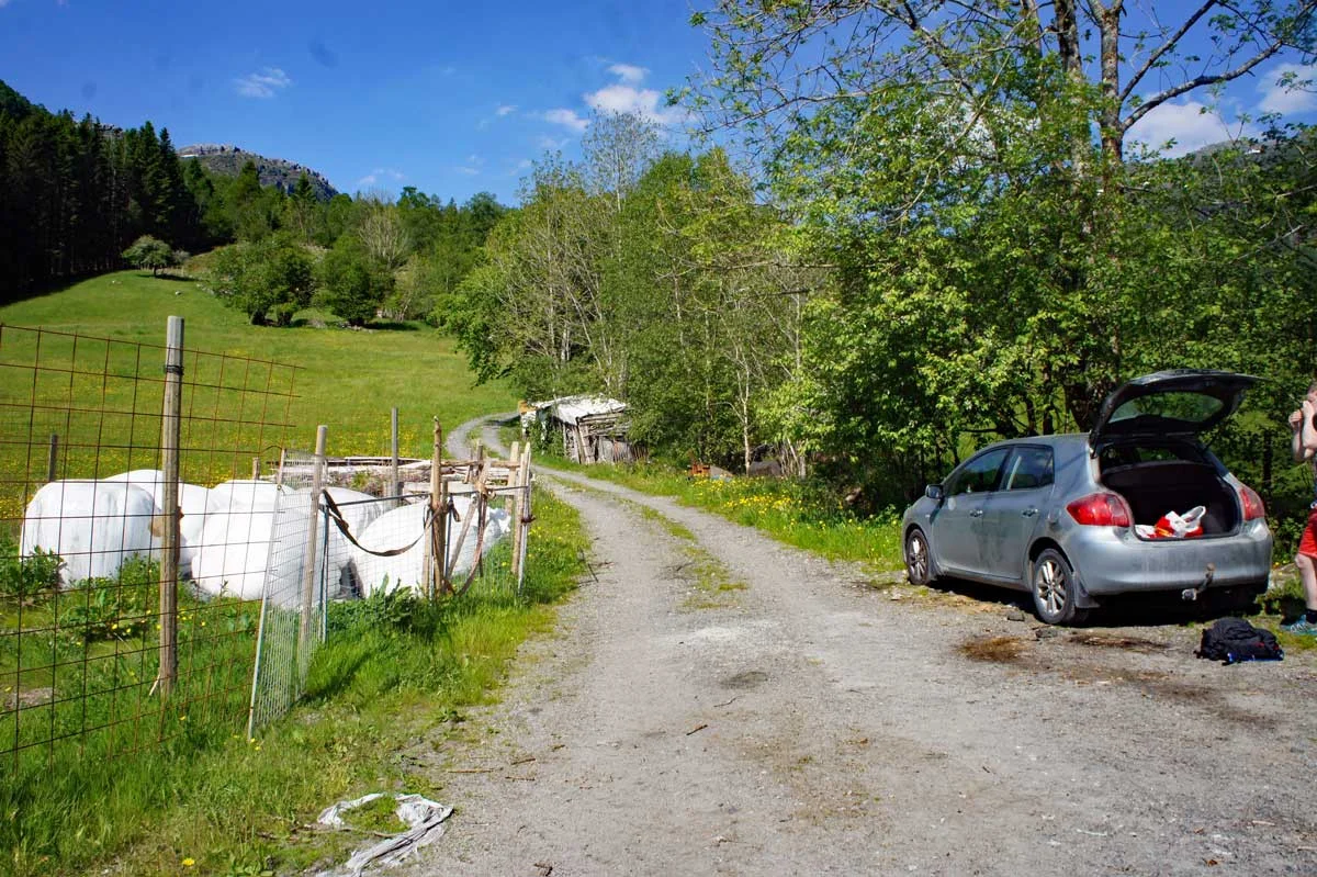 Turen begynner på skogsvei som svinger seg opp fjellsiden. Gå forbi vedskjulet og følg veien rundt den krappe svingen mot venstre til Stussklevia. Her flater det ut og skogsveien går rett frem. Følg med etter stien på høyre side som leder av skogsveien inn i skogen. Stien snegler seg oppover fjellet og etter en stund kommer til skilt merket "Gjønakvitingen". Like etter kommer du inn i en bratt parti som fører deg over tregrensen.