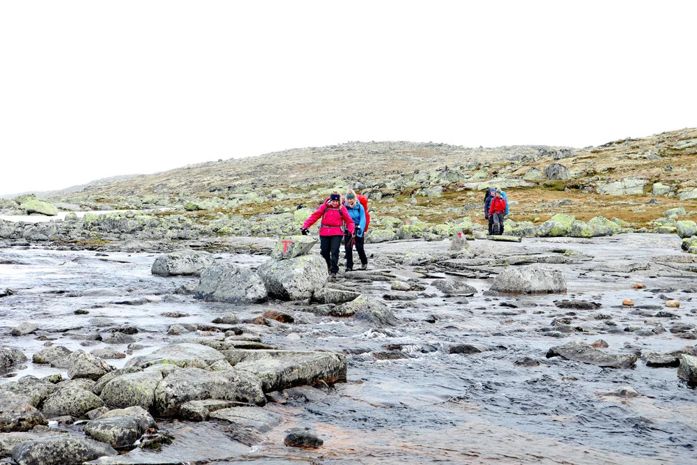 Første dag tar deg sørover fra Finse, over høyfjellsplatået og ned til idylliske Krækkja turisthytte.