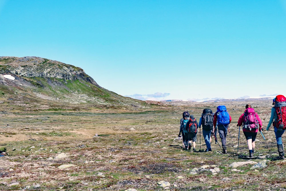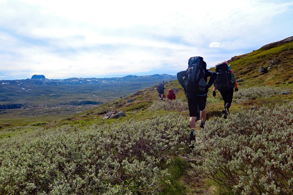 Siste etappe går mot Hjølmo i Eidfjord. Landskapet skifter fra vidde til frodig ve...