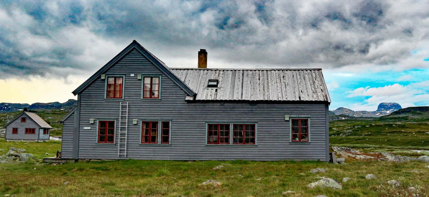 Halne Fjellstugu (1140moh) ligger langs hovedveien som går over Hardangervidda.