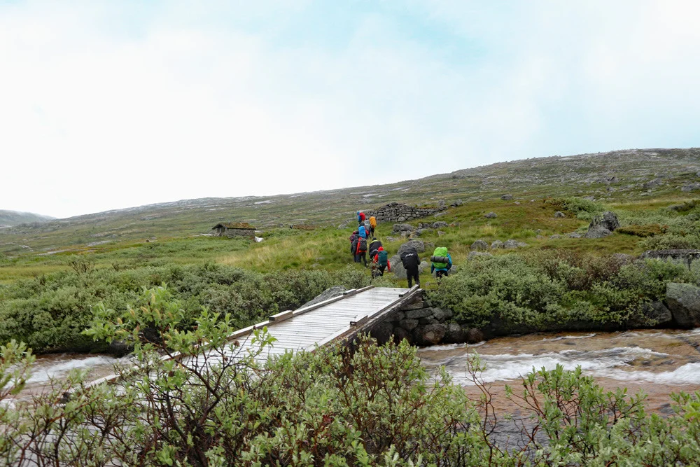 Siste etappe går mot Hjølmo i Eidfjord. Landskapet skifter fra vidde til frodig vestlandsnatur med elver og fosser.