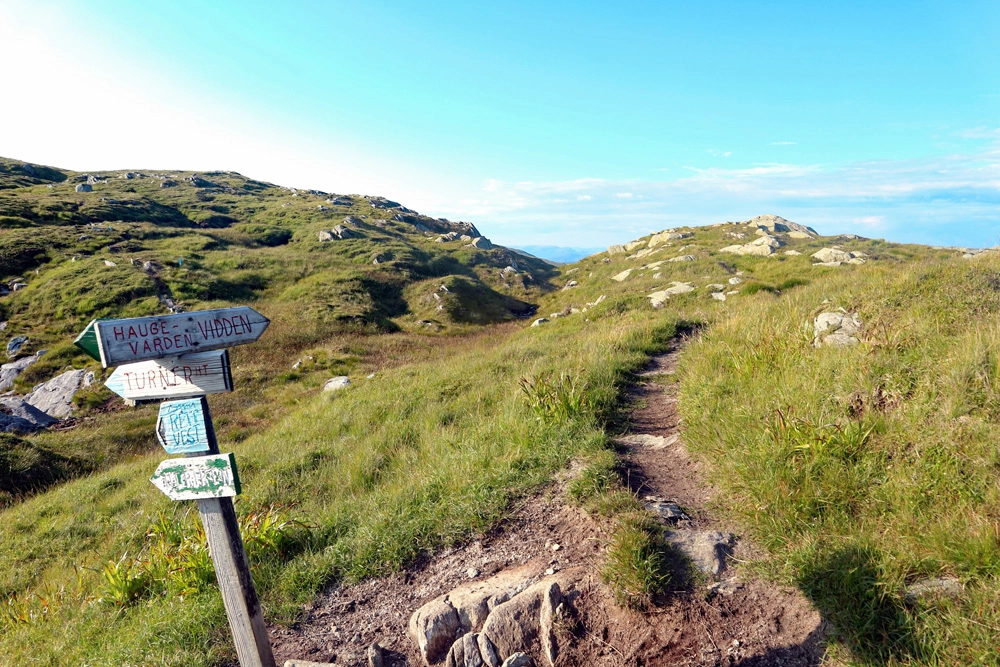 Hauggjelsvarden (673 moh.) - høyeste punkt på Vidden. Fra Nesttun kjører du til Arna. Kjør over togskinner vis av vis Lone Camping og parker langs veien. Opp mot toppen går turen først på vei og så gjennom skogen. Det er mange flotte utsiktpunkt, bla. Haukelandsvarden (640 moh.). På toppen er det to varder. Hauggjelsvarden (673 moh.) hvor det er bok. Ca. 100 meter mot sør-vest er en større varde. Dette er Viddens høyeste punk på 674 moh. For en lengre tur kan man fortsette turen over Vidden ved å gå inn på varderekken.