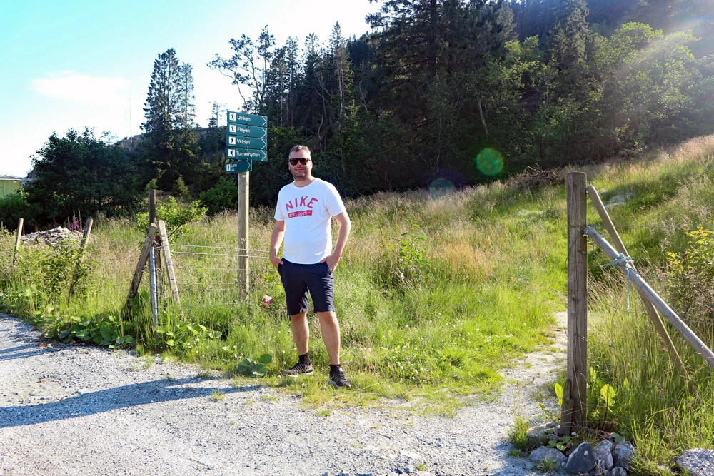 Fra parkeringen går du oppover Sædalssvingene. Følg de helt opp til vannanlegget.