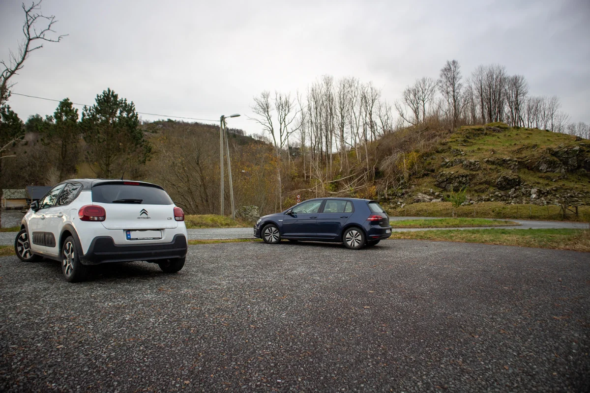 Gratis parkering like over broen. Stor P-plass.