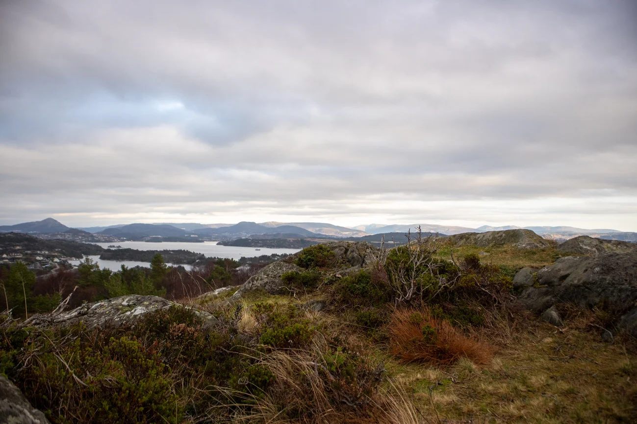 På toppen er det utsikt mot Flesland og du kan se toppen på Lyderhorn stikke opp i det fjerne.