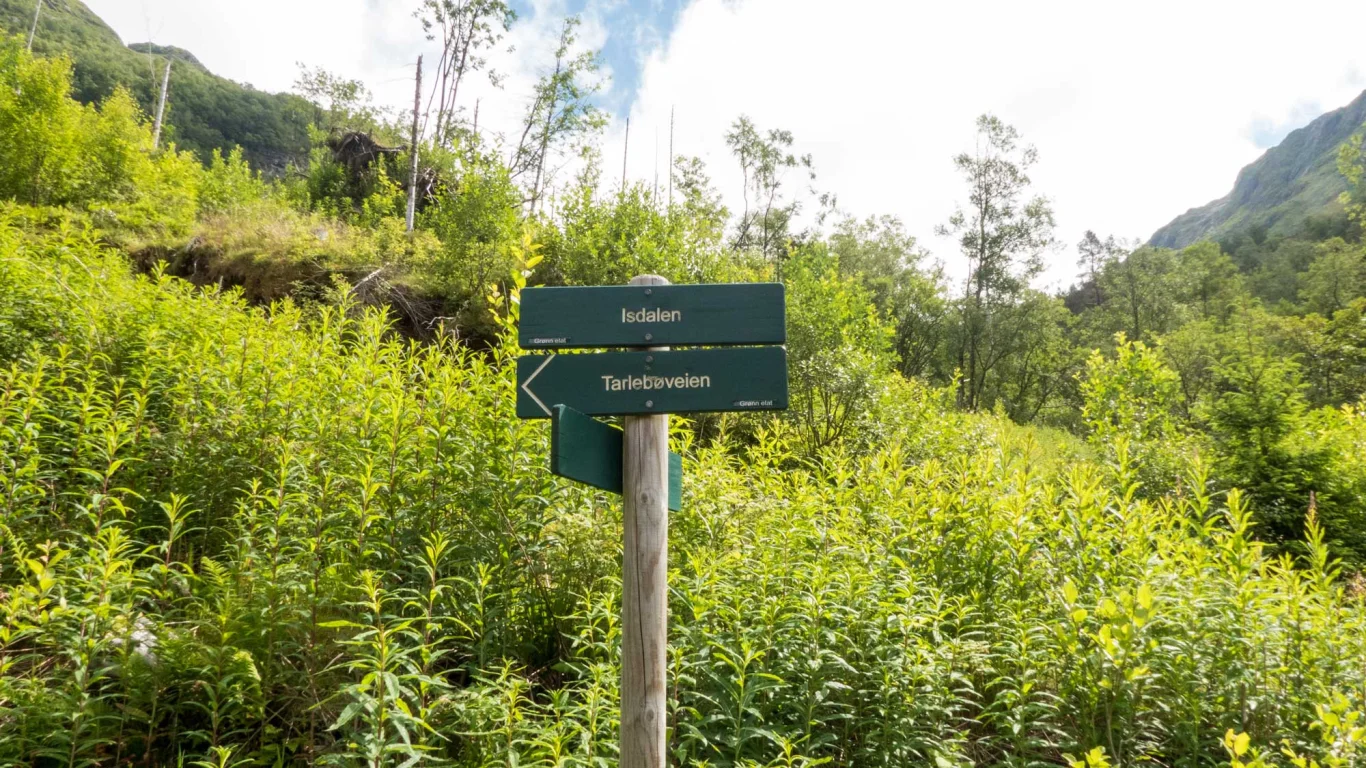 Start turen på Tarlebøveien langs Svartediket. Ta til høyre ved skilting mot Isdalen. Ta også neste vei til høyre over en liten bro og følg grusveien til enden. Her er det skilting til Isdalen men starten på stien er vanskelig å få øye på. Se etter skiltet med en pil på som viser hvor du skal gå. Stien er ganske gjennomgrodd i begynnelsen men ikke vanskelig å følge. Halvveis opp i Isdalen er man over tregrensen og resten av turen går i et frodig og idyllisk fjellterreng.
