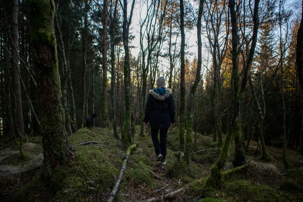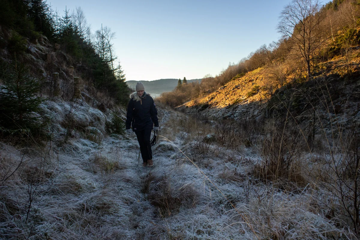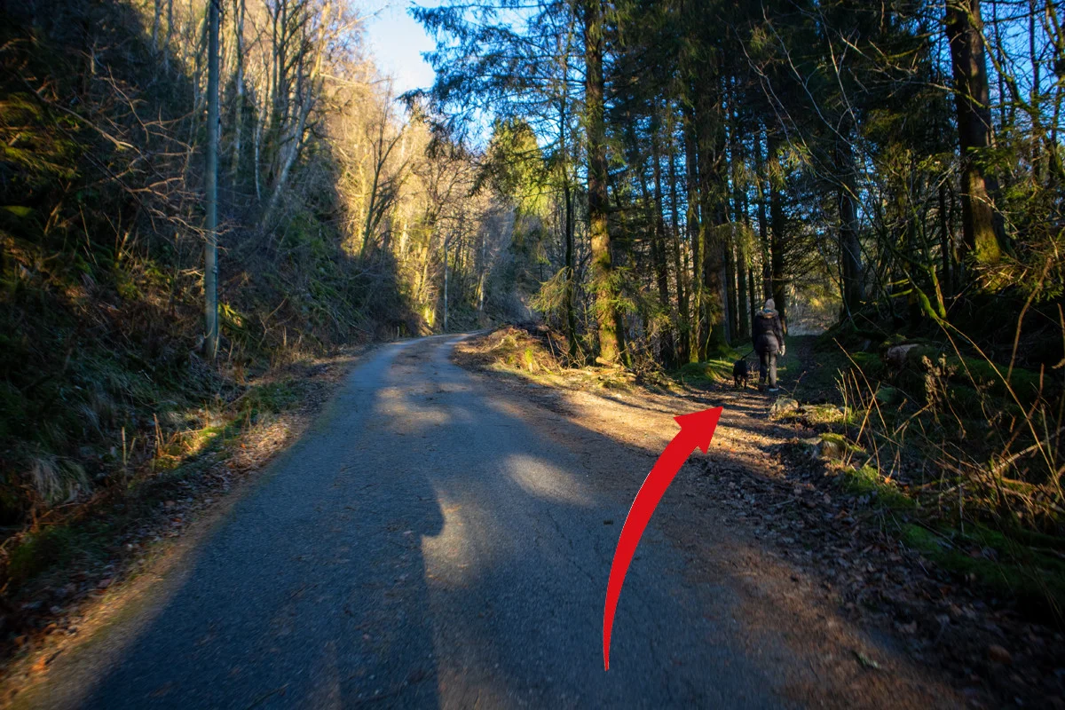 Fra bedehuset går du veien opp til høyre og følger stien ned i Kalandsdalen. Fra asfaltveien går du nordover til enden. Her følger du sti/dyretråkk oppover Kalandsdalen til du kommer inn på ny vei.