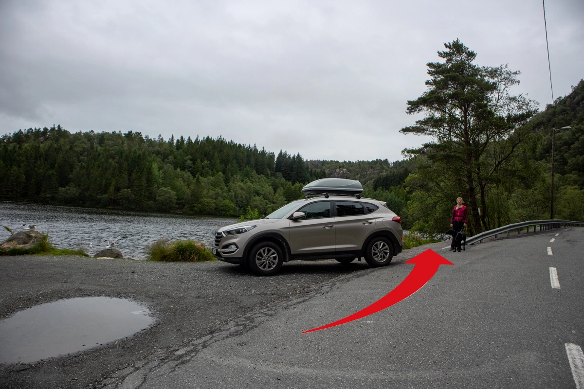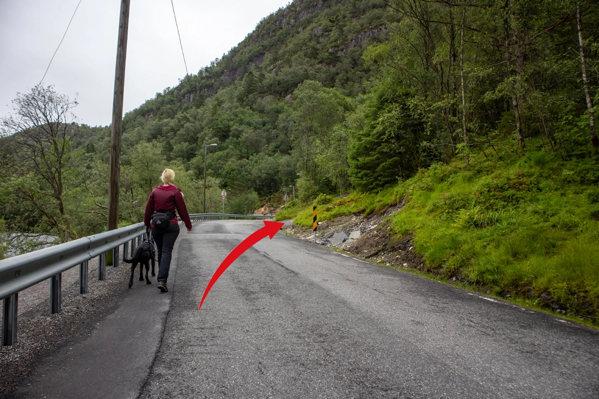 Turen starter ved Svartatjørna. Gå ca. 100 meter langs veien. På motsatt side av veien går en ny vei opp til høyre. Følg denne veien opp bakken og rundt svingen. Ca. 100 meter før huset går en sti på venstre side inn i skogen. Følg denne stien opp i Rosenlundveien (asfaltert vei). Gå ca. 20 meter før ny sti leder opp fjellsiden på venstre side. Om du ser opp vil du se at stien går under en gammel telefonledning.