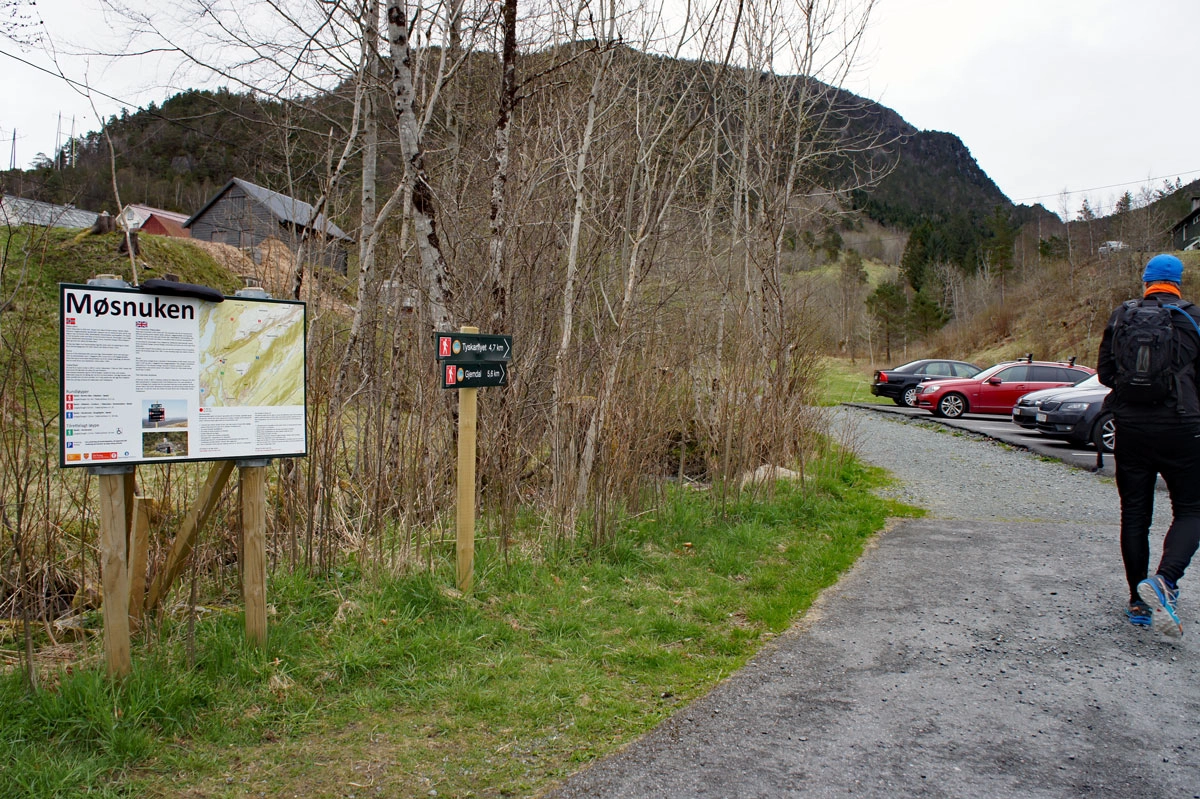Her starter turen. Følg veien over beitet å ta stien til venstre hvor det er merket "Linken". Herfra går stien bratt oppover til masten på 479 moh. Fra parkeringsplass til toppen er det ca. 1,9 km. Herfra er turen lettere og du kan nyte utsikten over Os og Fusa. Følg ryggen innover forbi Tyssedalsfjellet hele veien til Møsnuken (ca. 3 km). Fra toppen kan du gå samme vei tilbake eller ned igjen via Stemmedalen. Den første delen av denne nedstigningen er bratt så anbefales ikke om det har regnet mye.
